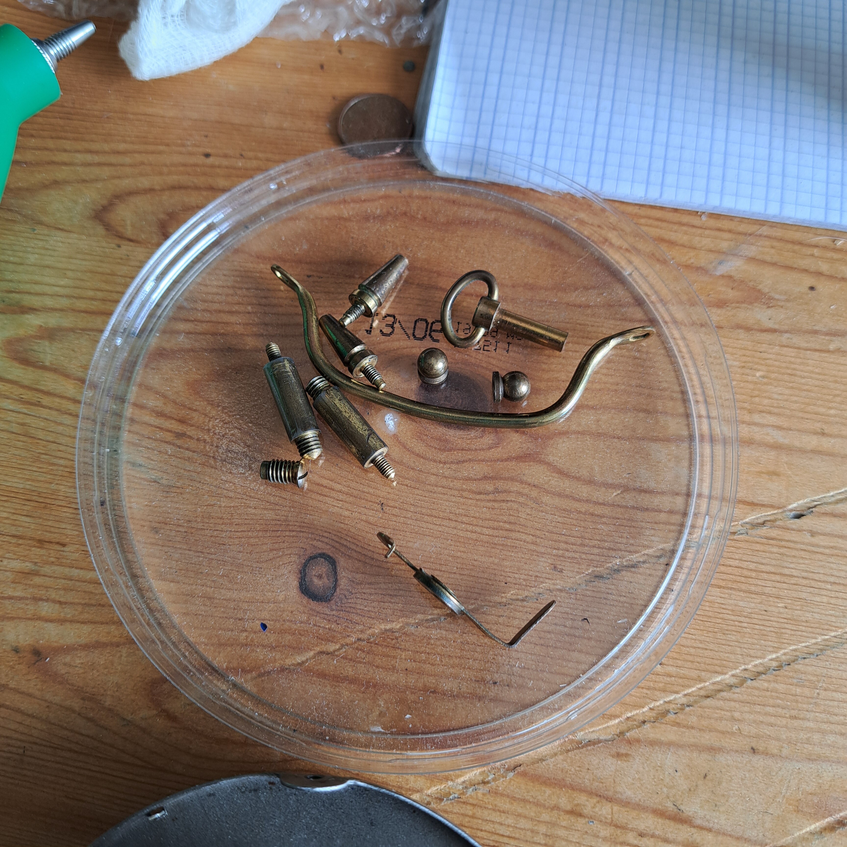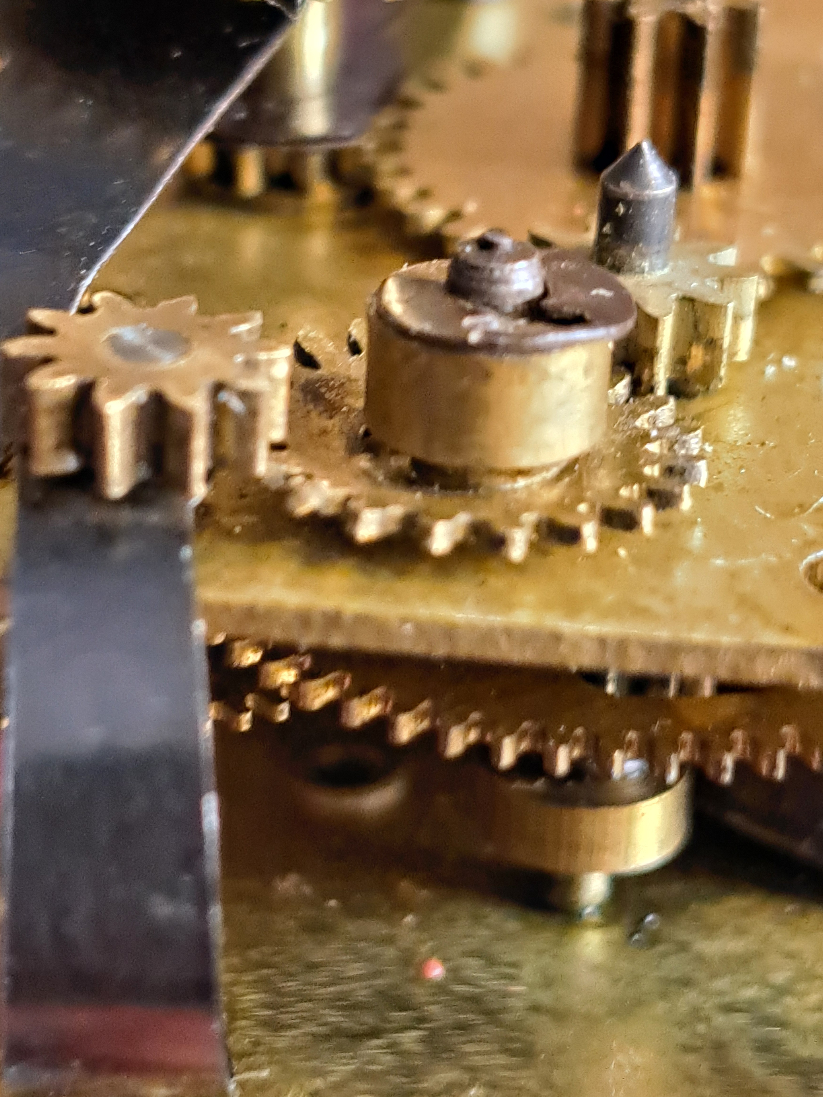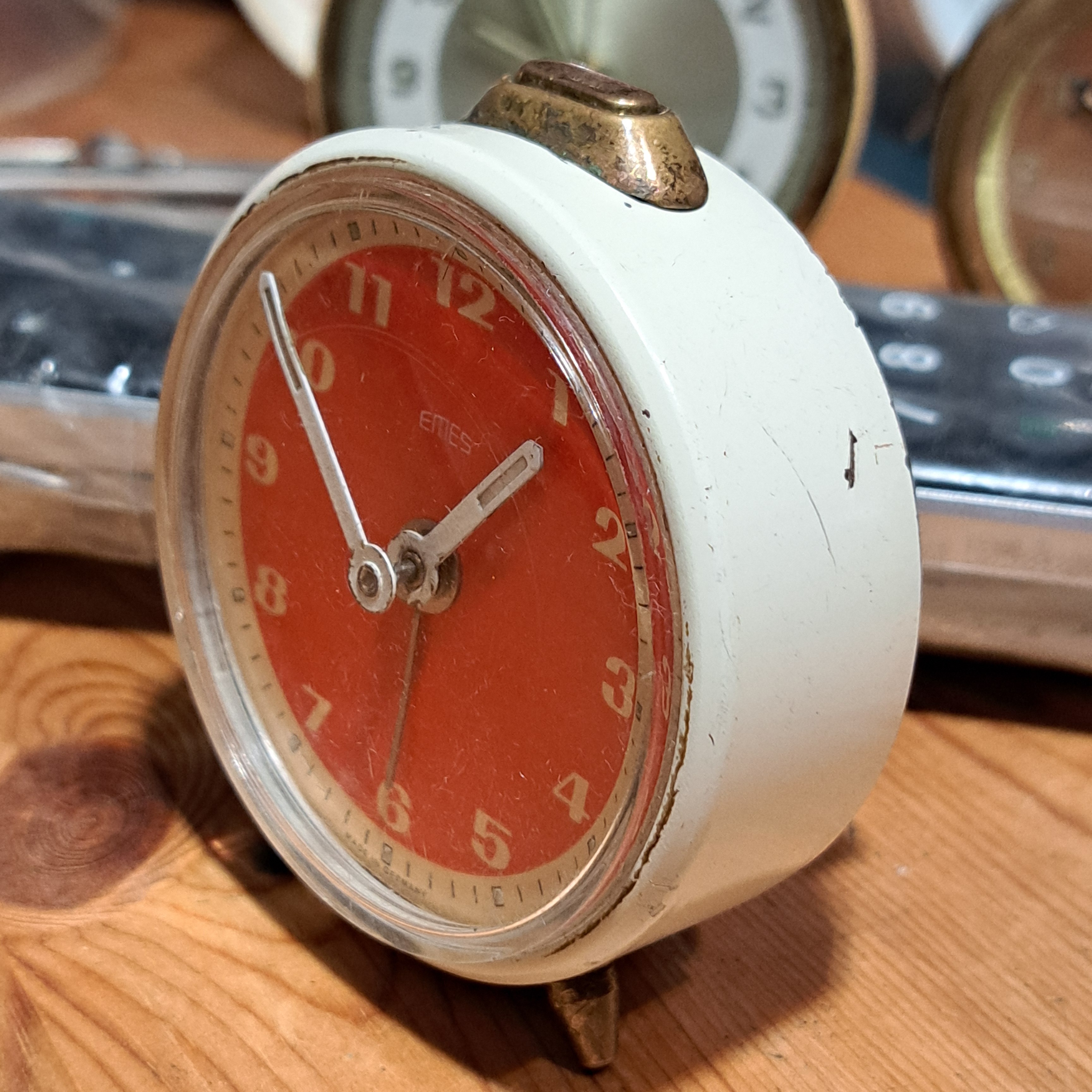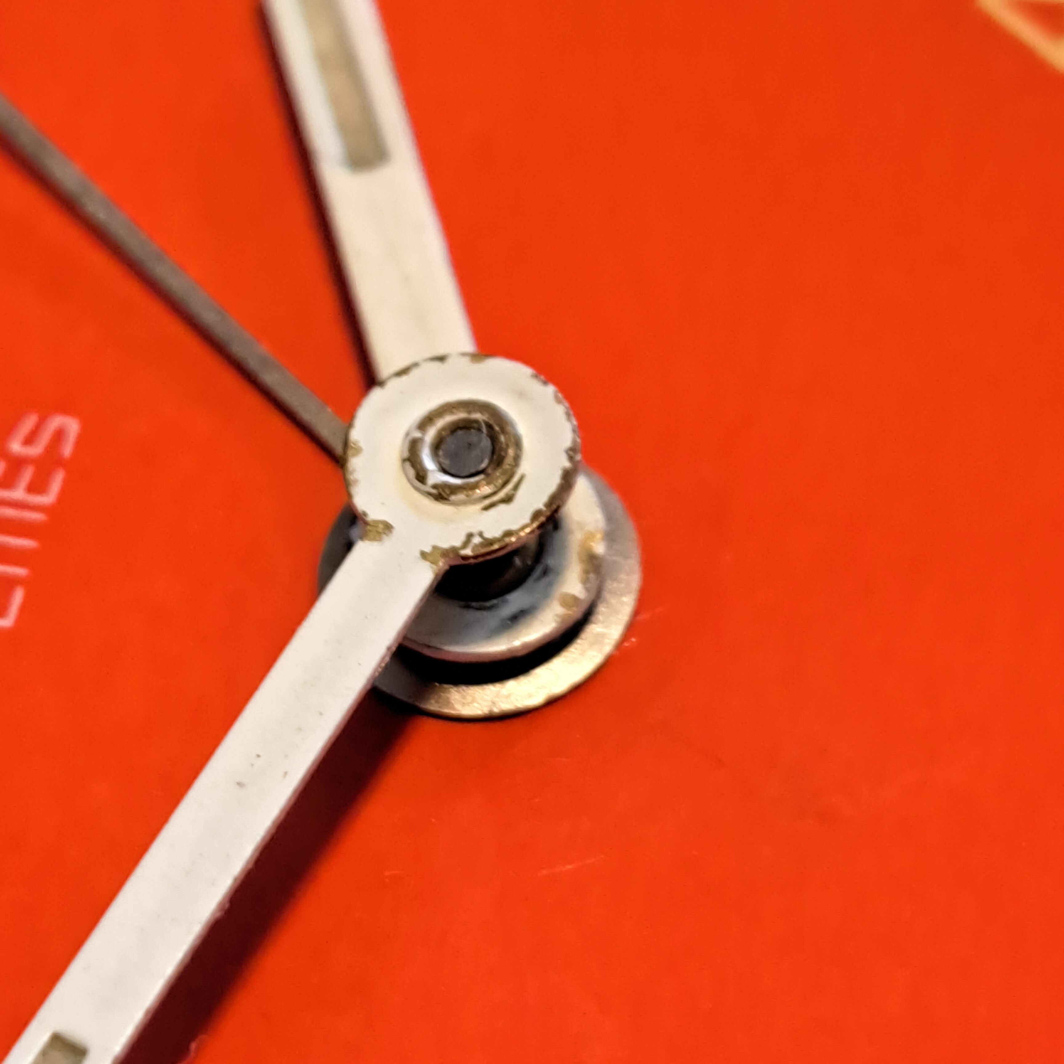 He decapado la pintura con acetona y pulido el metal de la carcasa, repasado con mucho cuidado las agujas, cambiado la manivela de la cuerda, pintado y lacado un par de piezas.