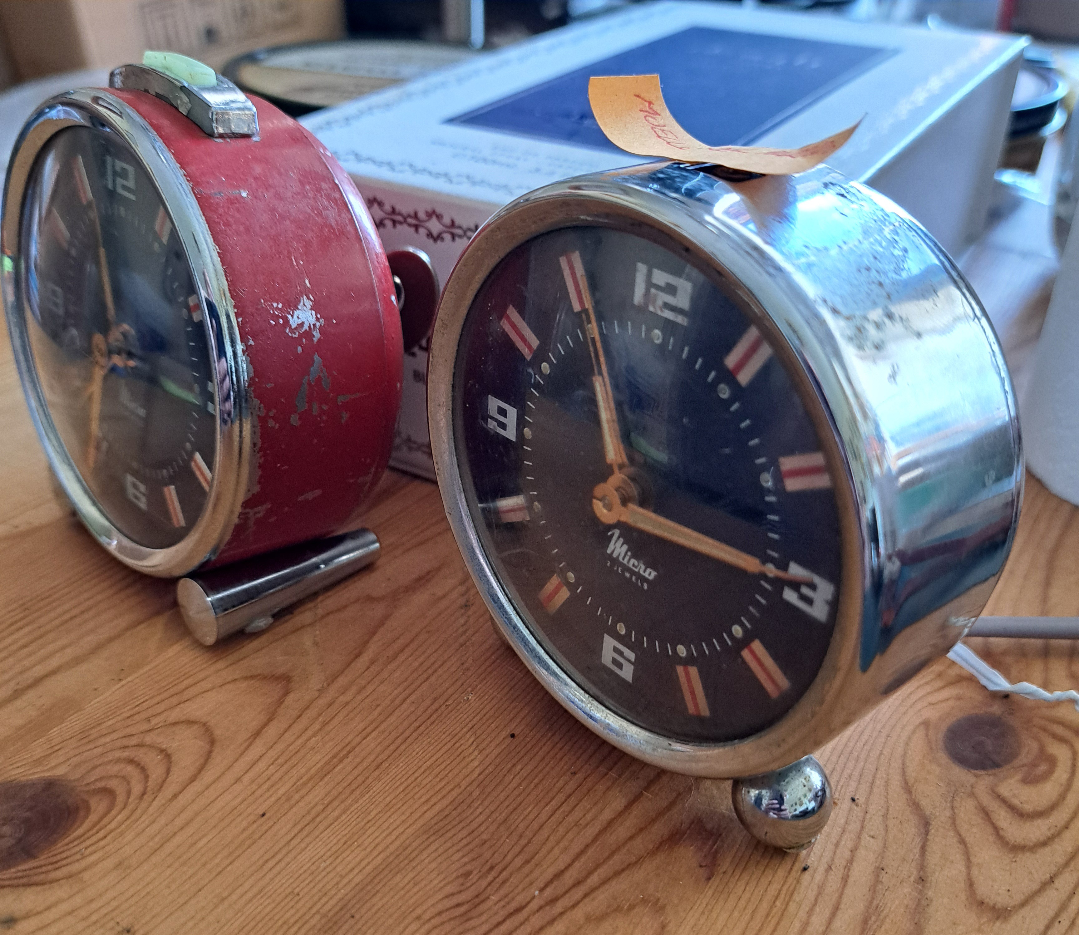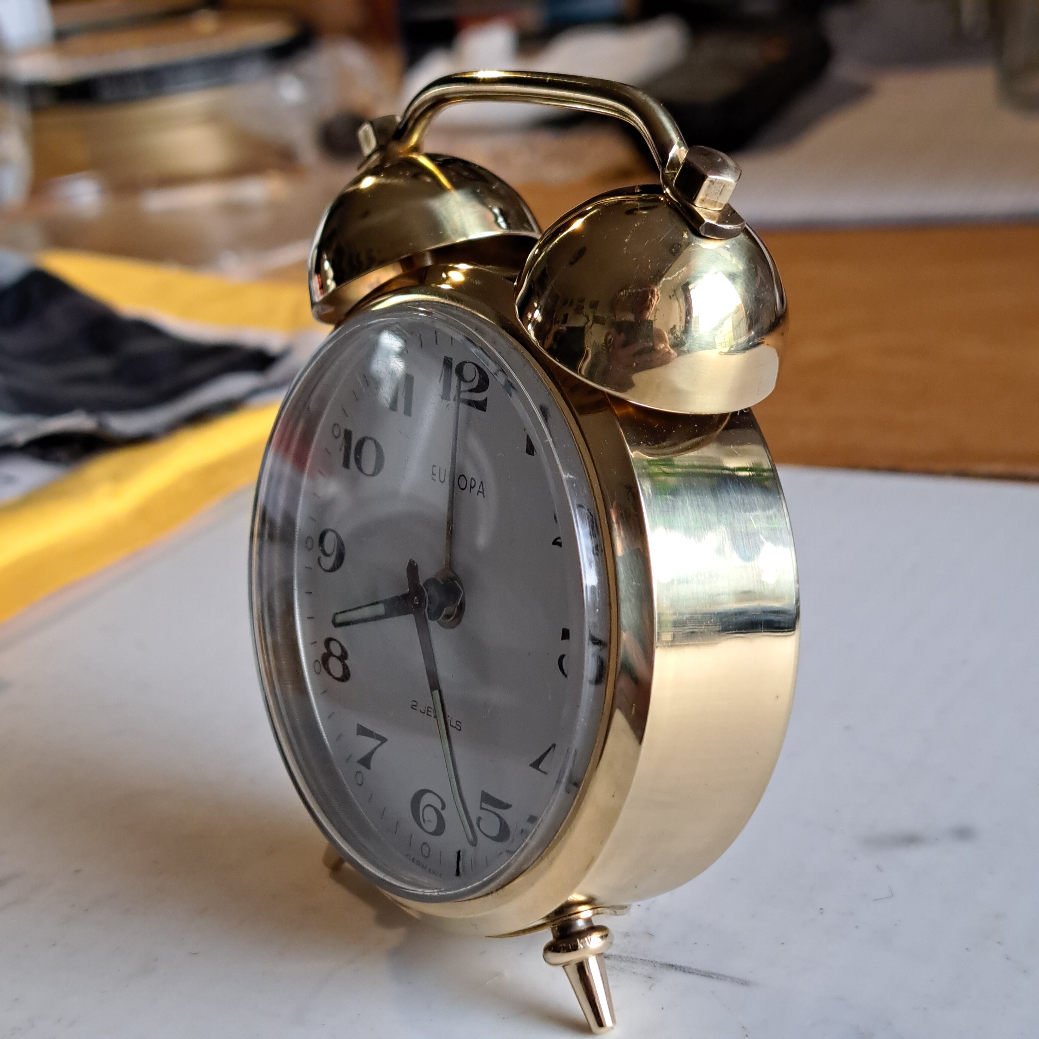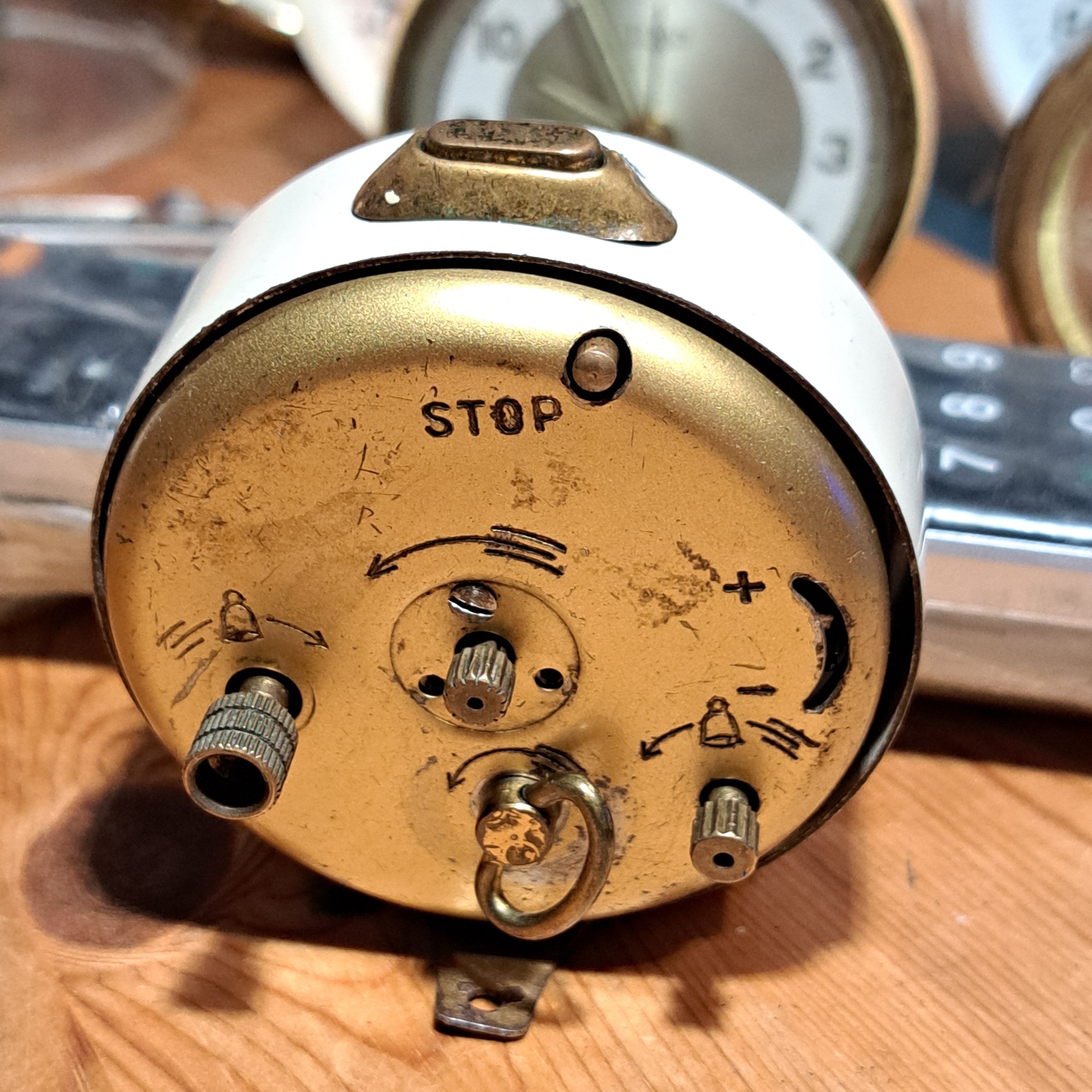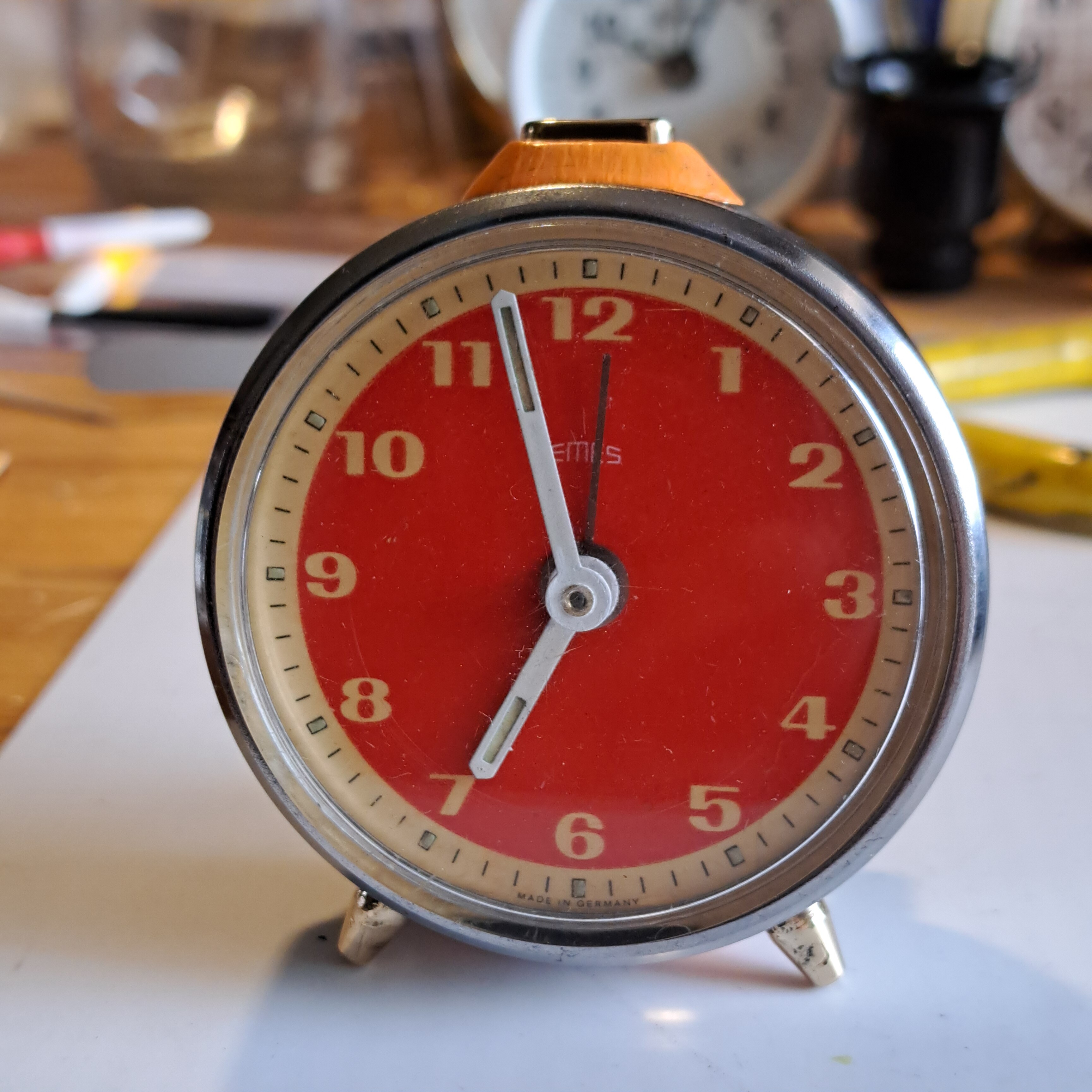 He decapado la pintura con acetona y pulido el metal de la carcasa, repasado con mucho cuidado las agujas, cambiado la manivela de la cuerda, pintado y lacado un par de piezas.