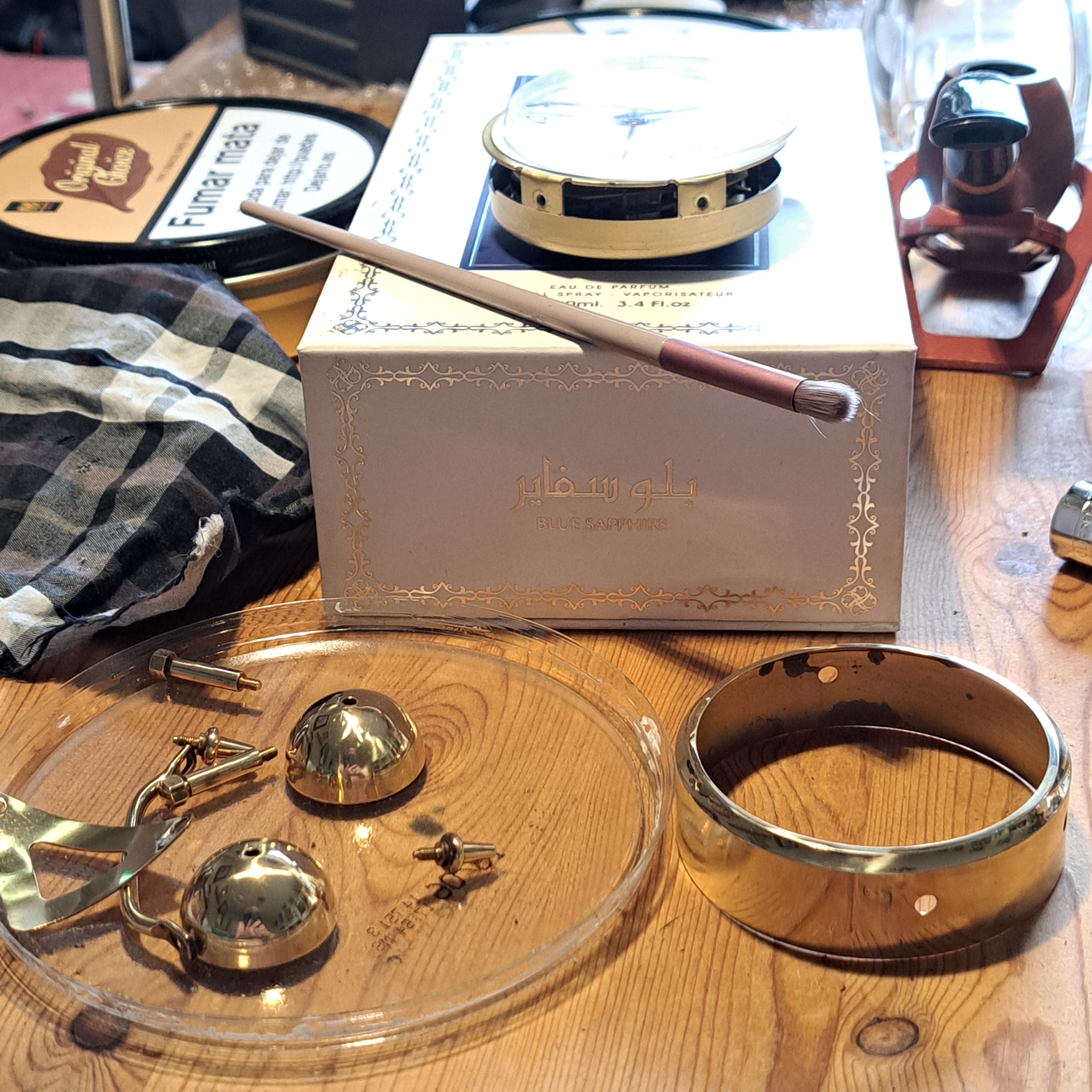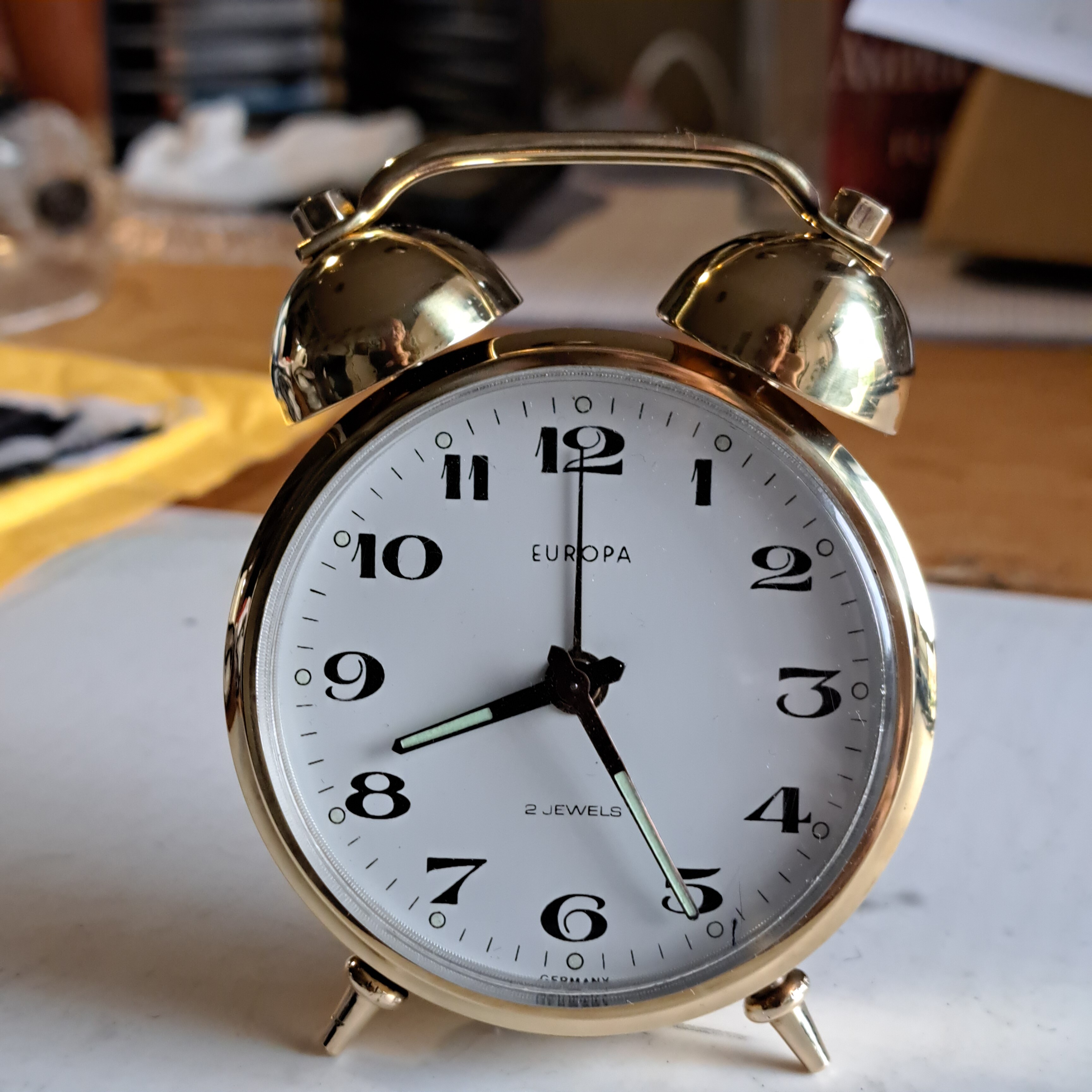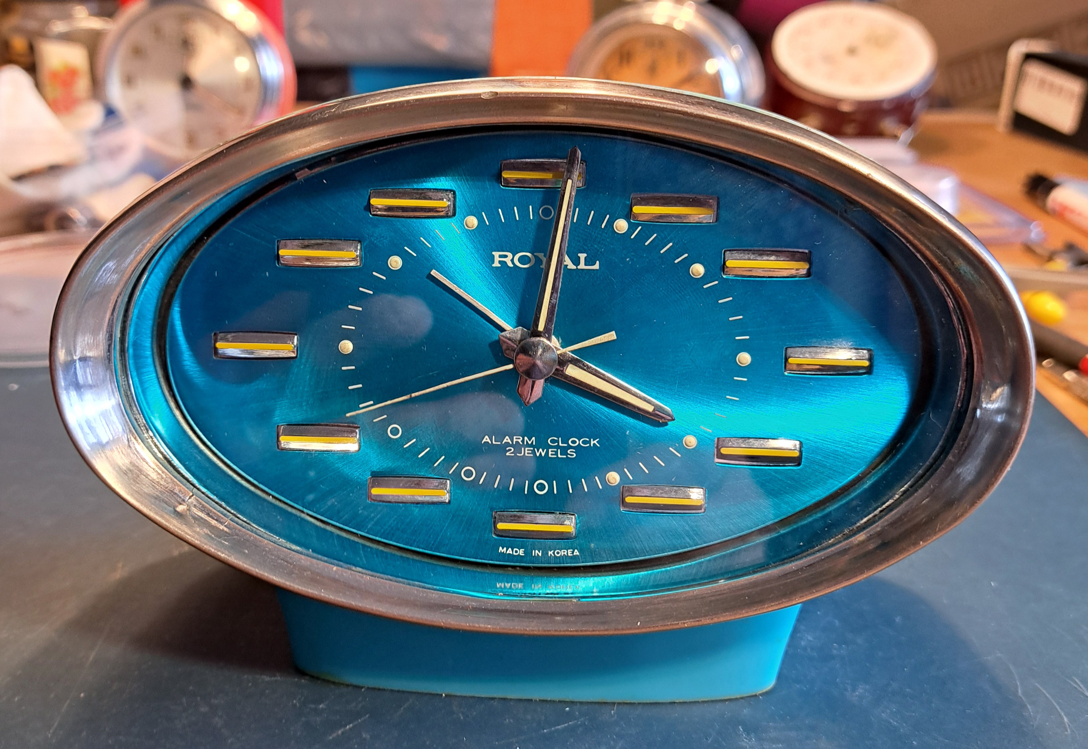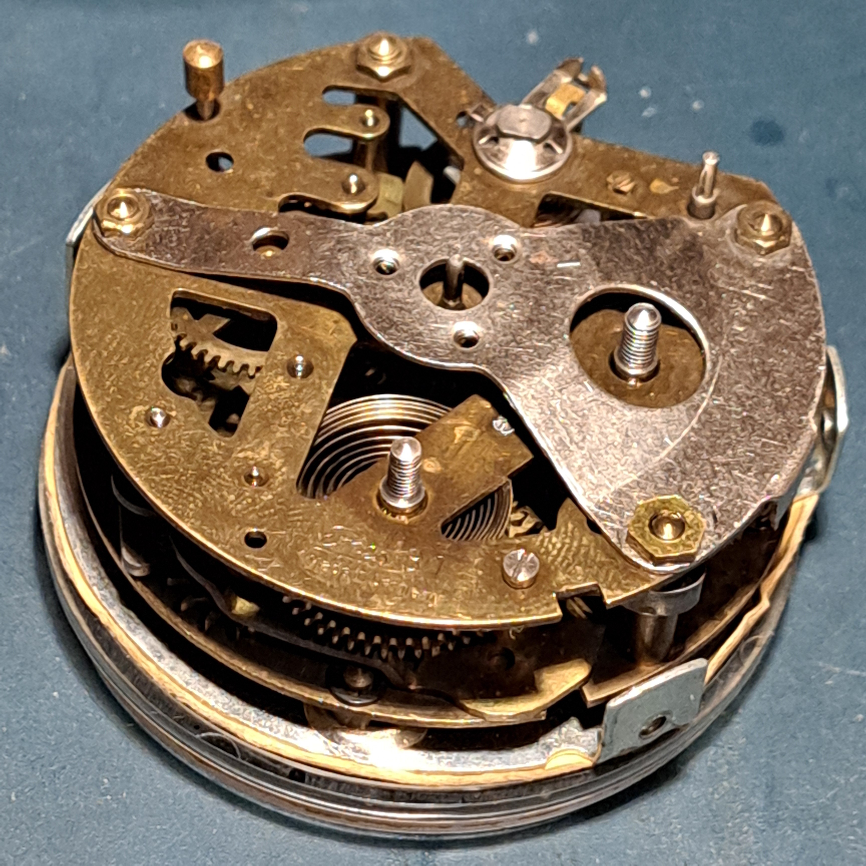 He decapado la pintura con acetona y pulido el metal de la carcasa, repasado con mucho cuidado las agujas, cambiado la manivela de la cuerda, pintado y lacado un par de piezas.