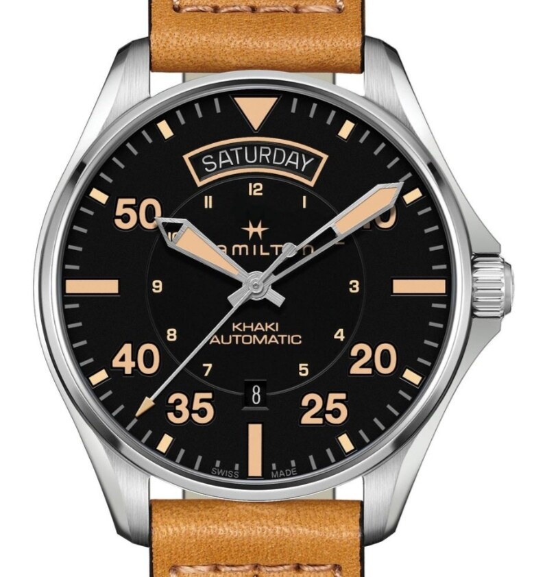 Este Hamilton nunca me ha gustado, me gustan mucho los relojes más o menos simétricos, y este es la antítesis. Una aguja hueca de una manera, la otra lo contrario, los indicadores numéricos de los minutos la mitad de la esfera para abajo ponen 4, de la mitad de la esfera hacia arriba 2. Aparte de que de medida de caja es enorme.