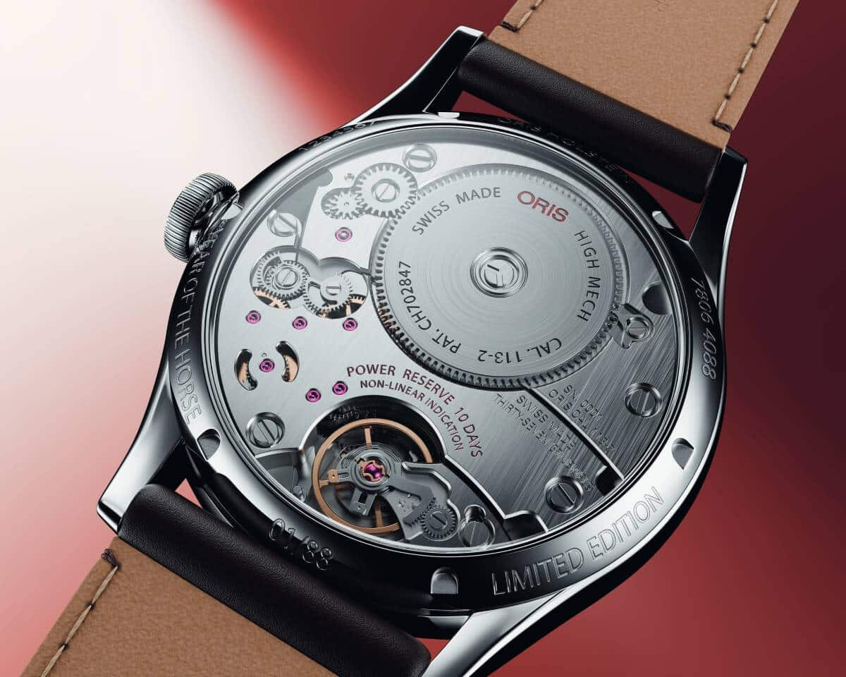 El Calibre utilizado es el Oris 113 de cuerda manual con reserva de marcha de 10 días (240 horas).