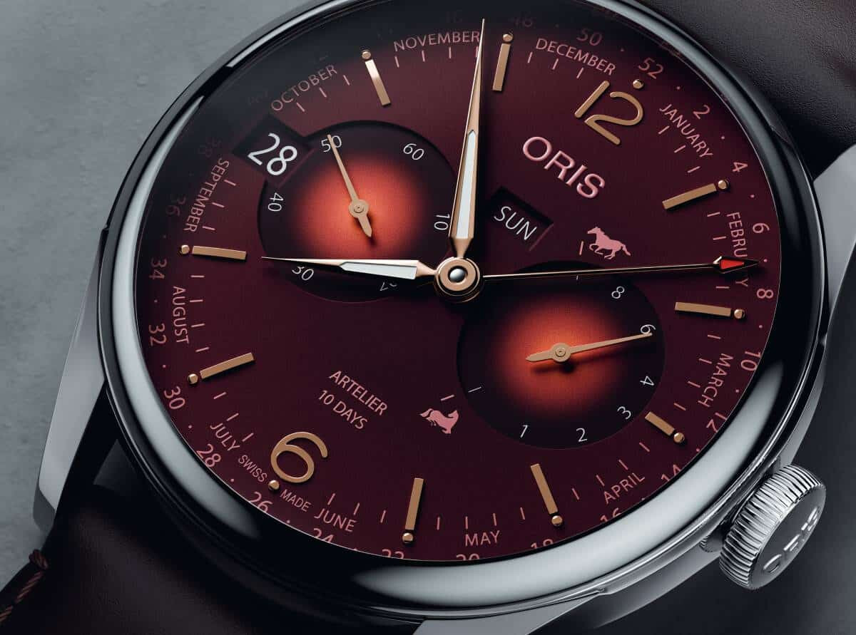La correa está confeccionada en cordovan marrón oscuro, una piel de caballo conocida por su durabilidad y flexibilidad. El conjunto busca reflejar el dinamismo y la fuerza simbólica del caballo en la cultura china.