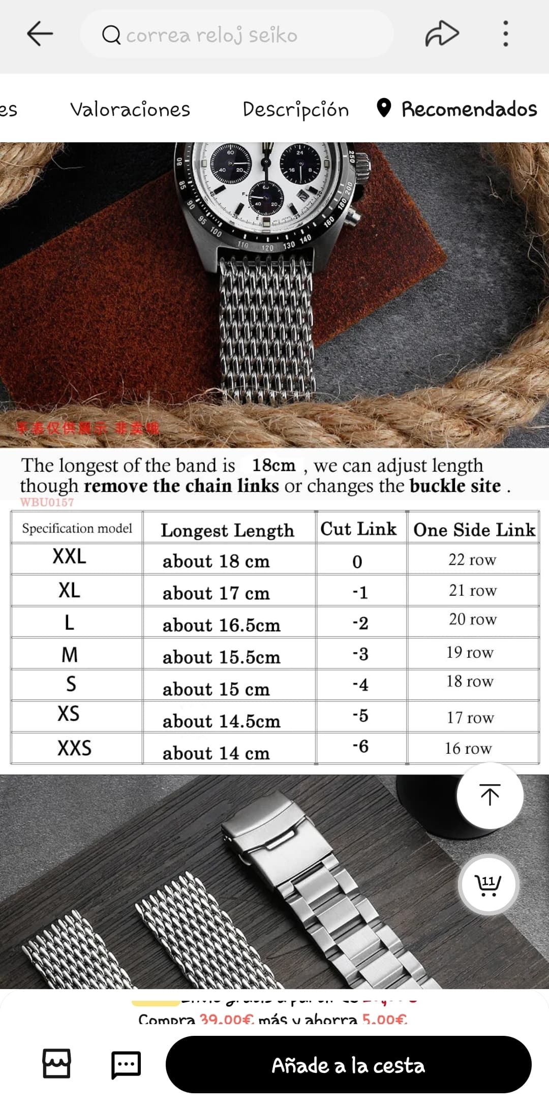 Hombres, ten en cuenta que, con 17 de muñeca, fácilmente vas a tener que quitar, como poco, un eslabón de cada lado, con lo que solo te quedaría uno a cada lado del cierre, que no se van a ver mirando el reloj de frente o algo de lado y mirando el cierre pueden quedar chulos y darle más aire “pofecional”…