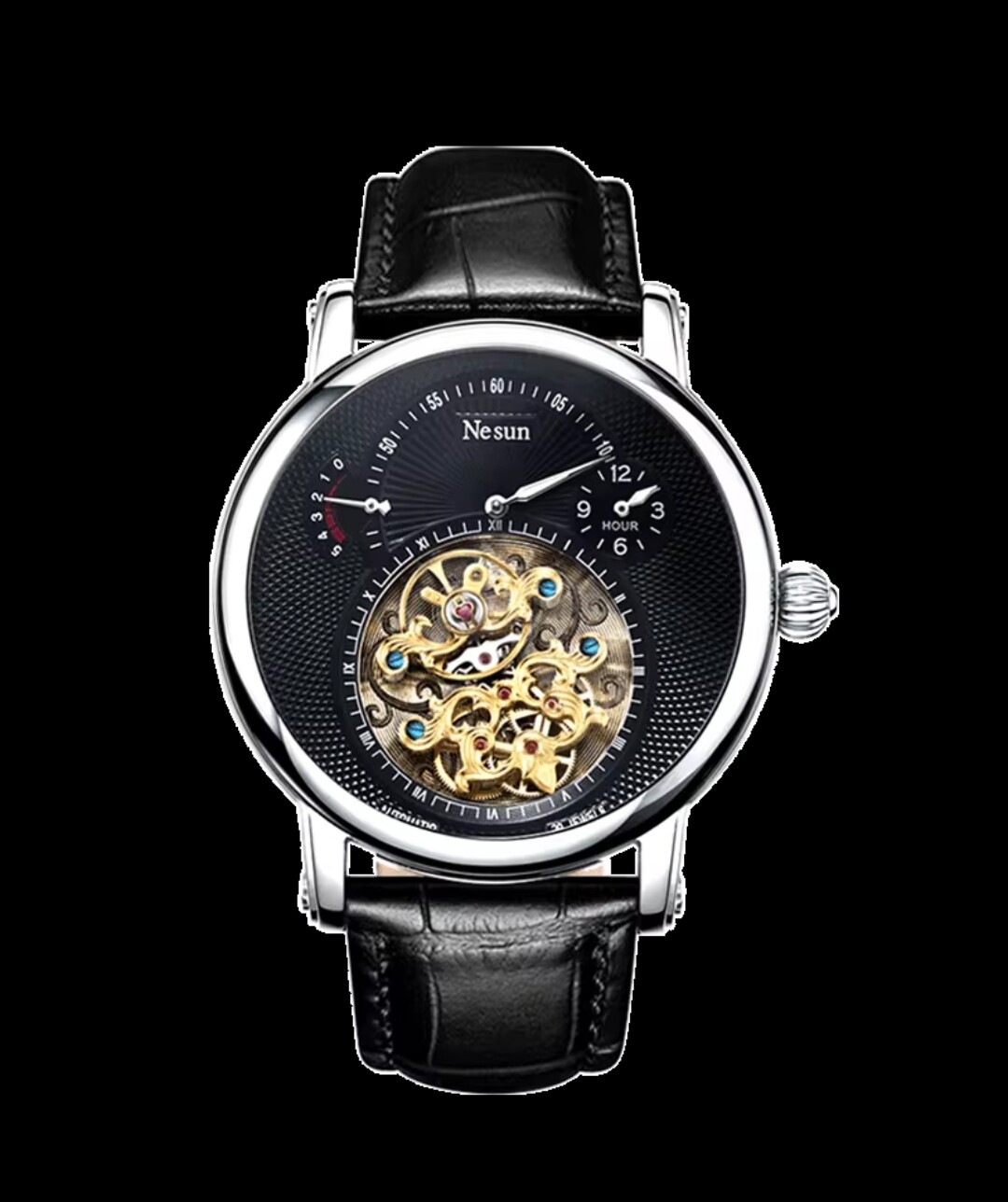 Mola el reloj, el calibre, la marca, el precio y mola el símbolo en relieve del año chino del buey (2021).