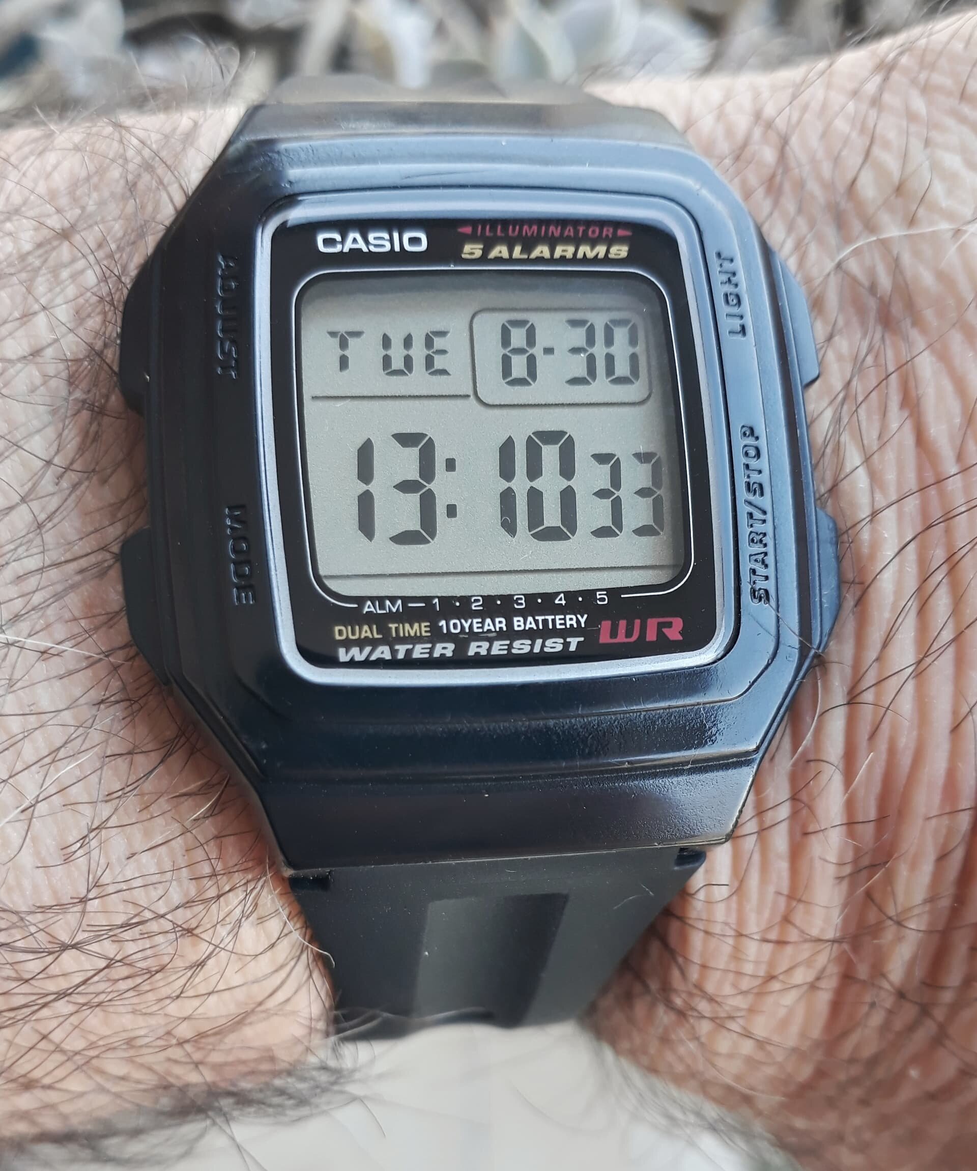 Hoy martes con un modelo olvidado no muy conocido de la serie F ,el Casio F-201 WA modulo 3196 . Un modelo muy completo con 5 alarmas,cómodo de usar,lo compré usado sin funcionar,en muy mal estado,con su correa rota. Le coloque pila nueva,correa casio original nueva,el plexi pulido al igual que la caja ambos muy rayados. Todo restauración propia ,hoy es un Casio que no dejo de usar con gran satisfacción de que un Casio nunca defrauda,la verdad me encanta este poco conocido modelo,muy recomendable para uso diario.