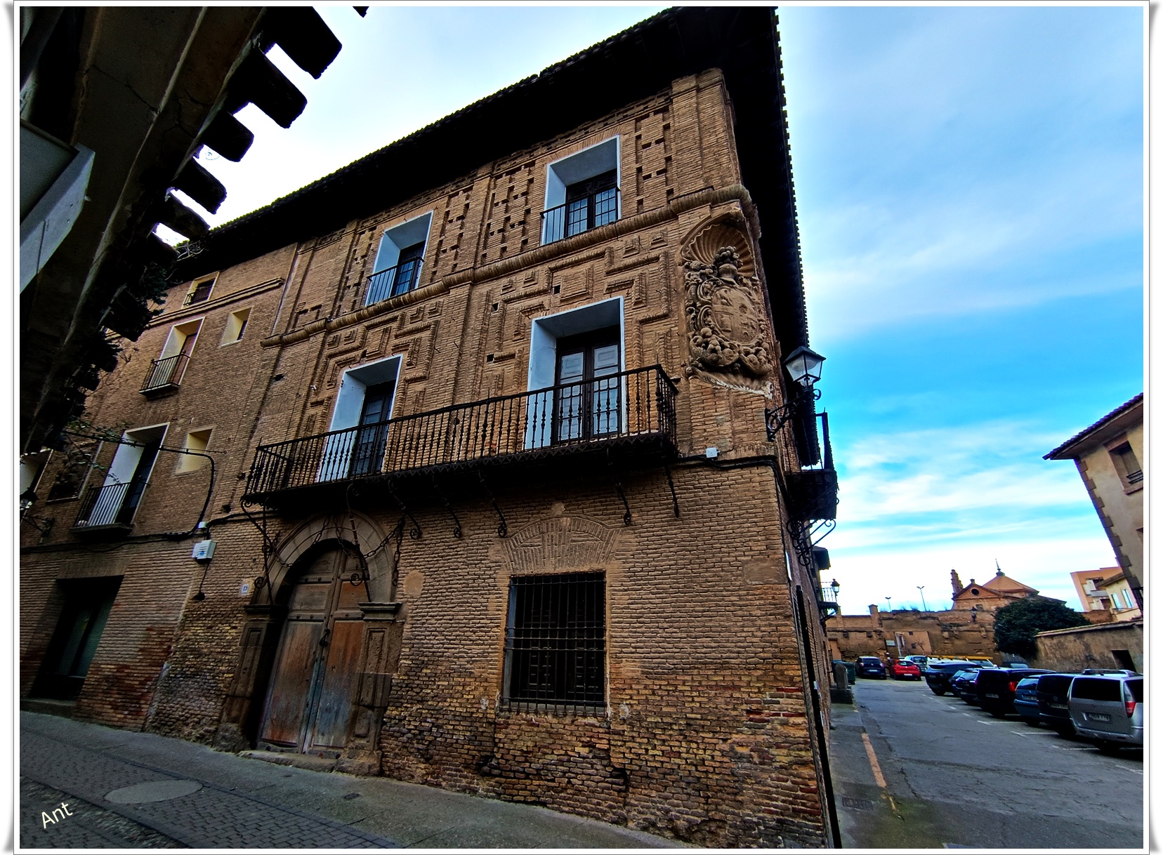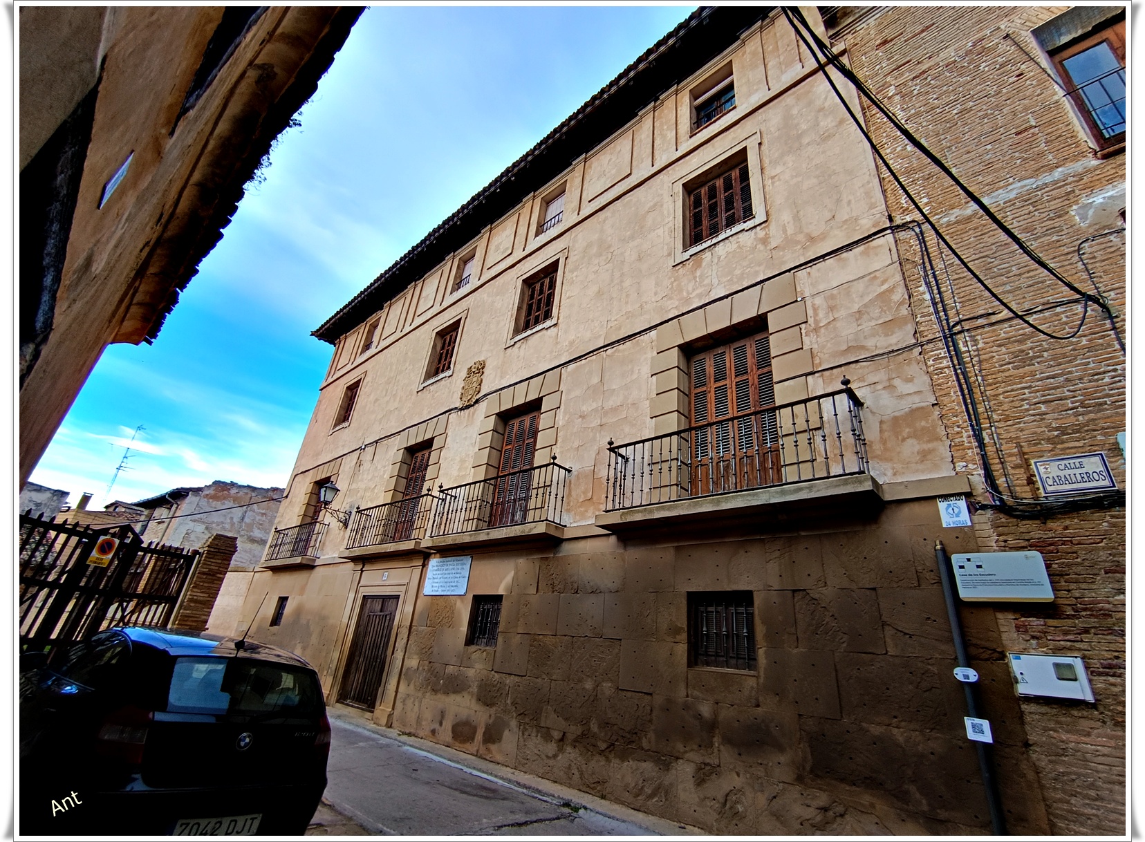 Por la calle Emilio Malumbres llegando a la calle de la Cárcel esta la Casa de los Gorraiz de Beaumont a un lado y al otro la de los Virto de Vera Anchorena