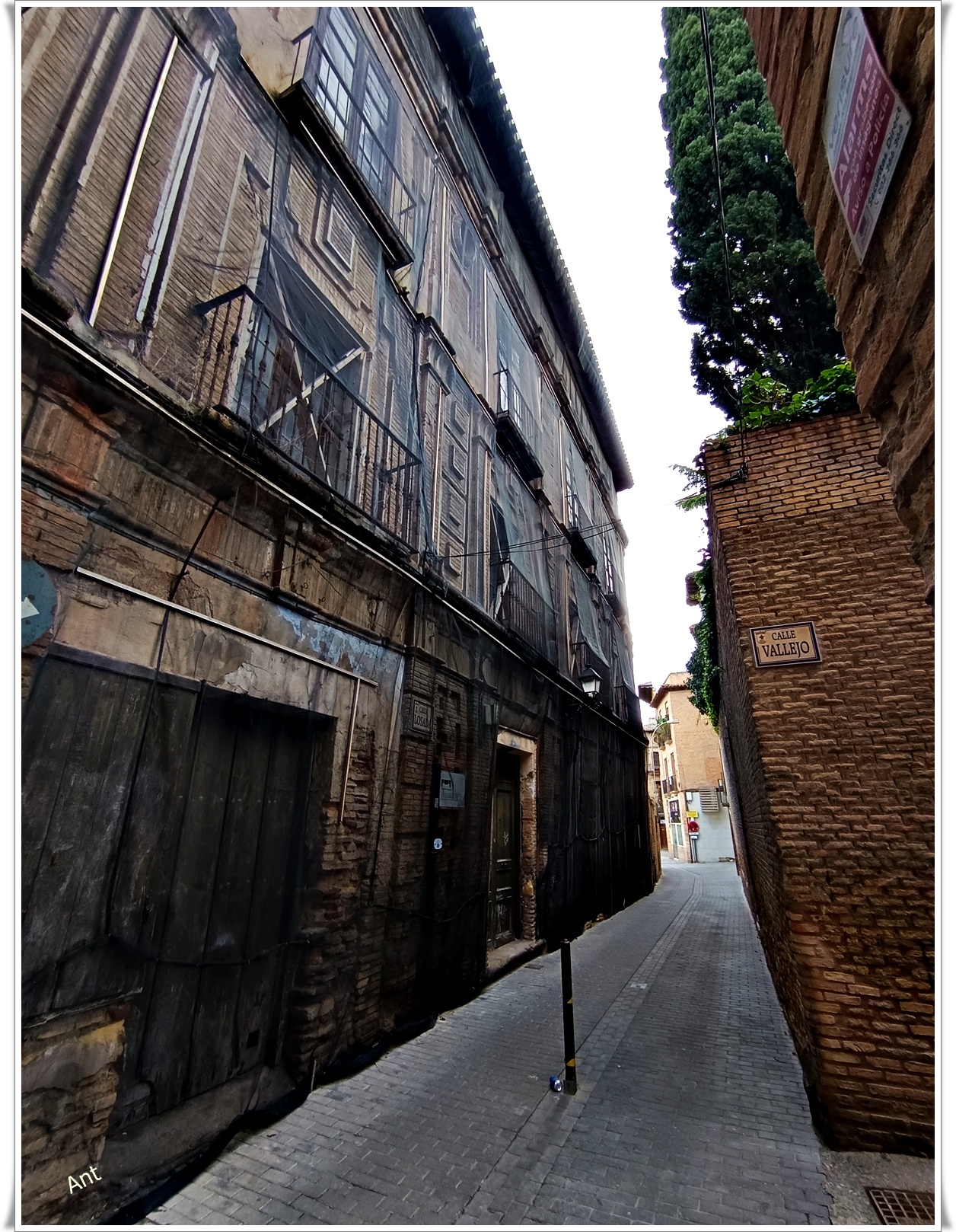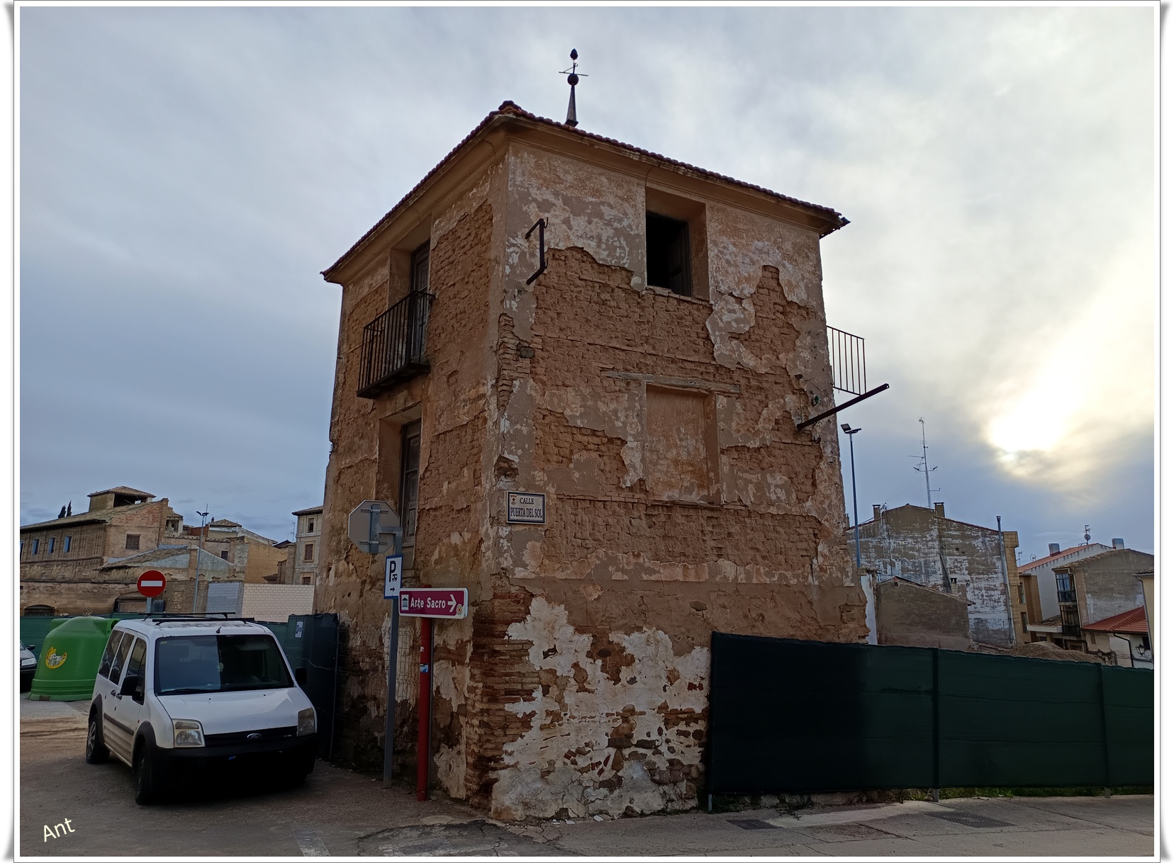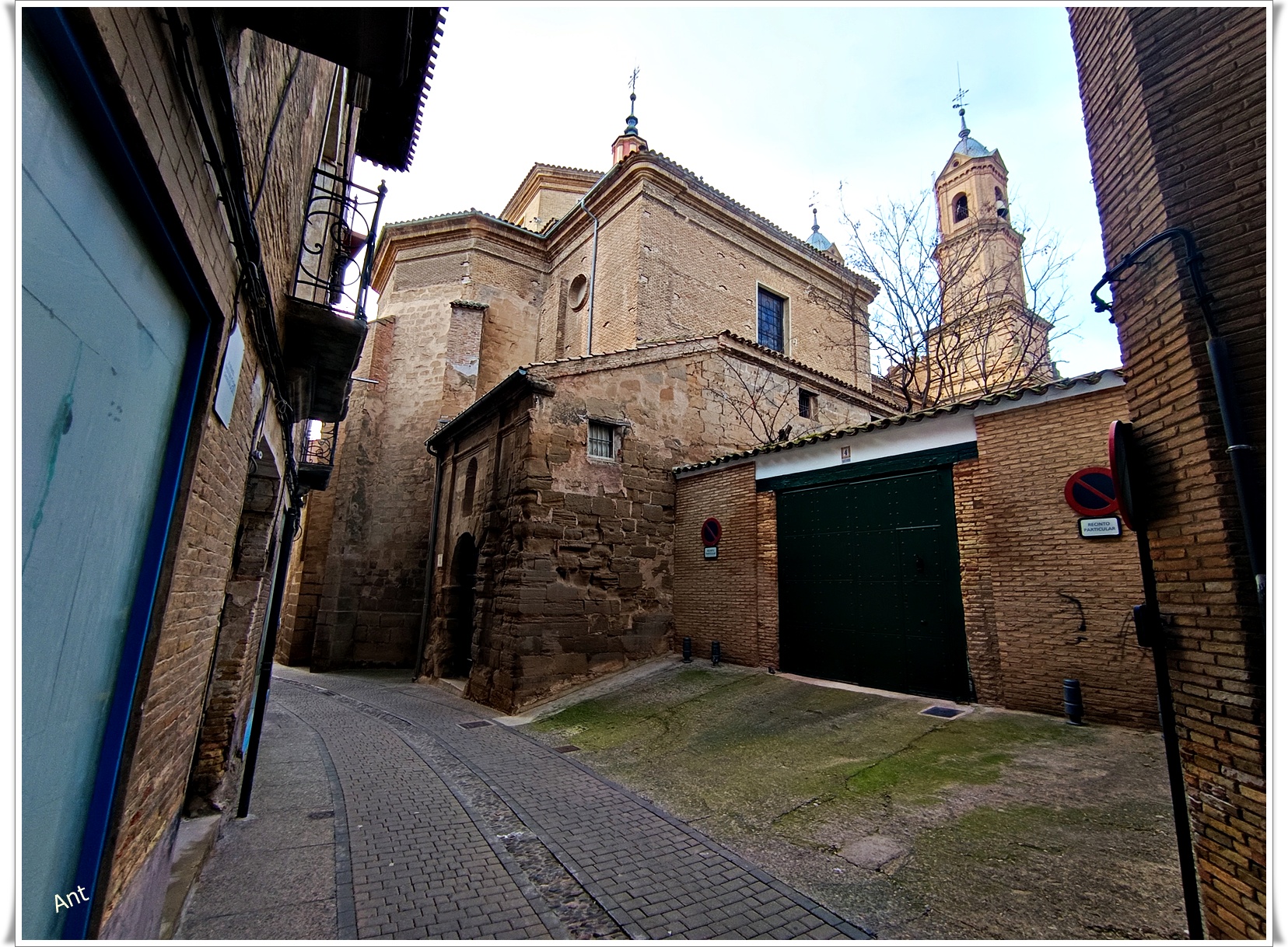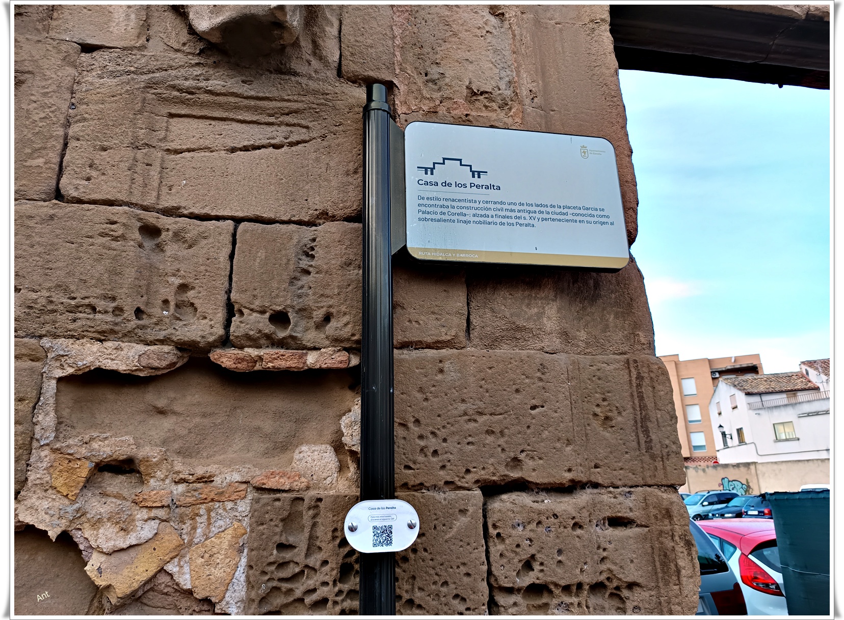 Si nos damos la vuelta veremos una torre que es lo único que queda de la construcción civil más antigua de la ciudad, conocida como Palacio de Corella, data de finales del s. XV, perteneció en su origen al sobresaliente linaje nobiliario de los Peralta y se situaba cerrando uno de los lados de la placeta de García a la que llegaremos en breve y ahí veremos lo que queda de la entrada, el resto se ha perdido tal como veremos en la fotografías.