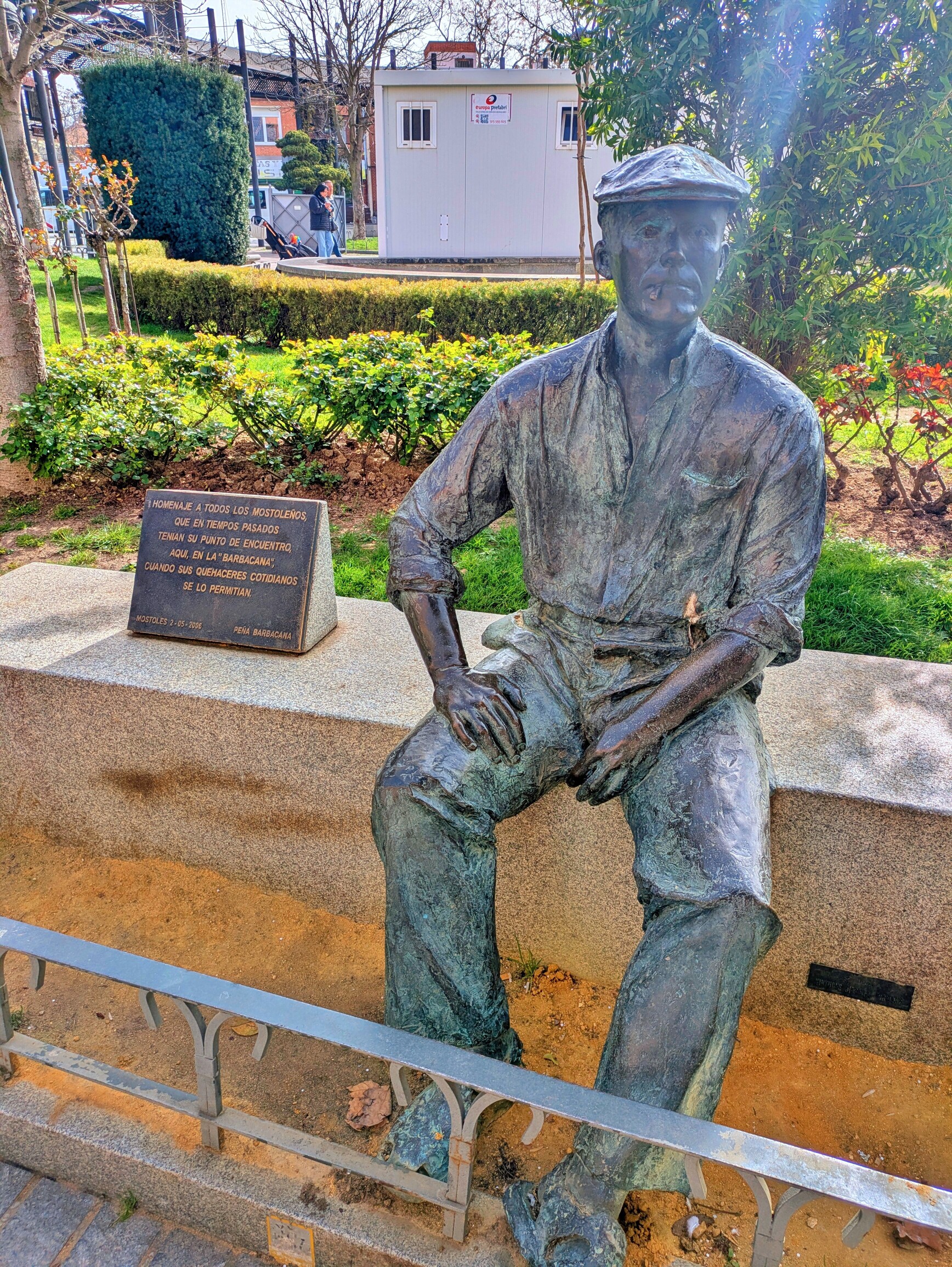 En la plaza está también el Homenaje al Mostoleño, una escultura de un trabajador sentado que representa a la gente del pueblo, a los vecinos de toda la vida.
