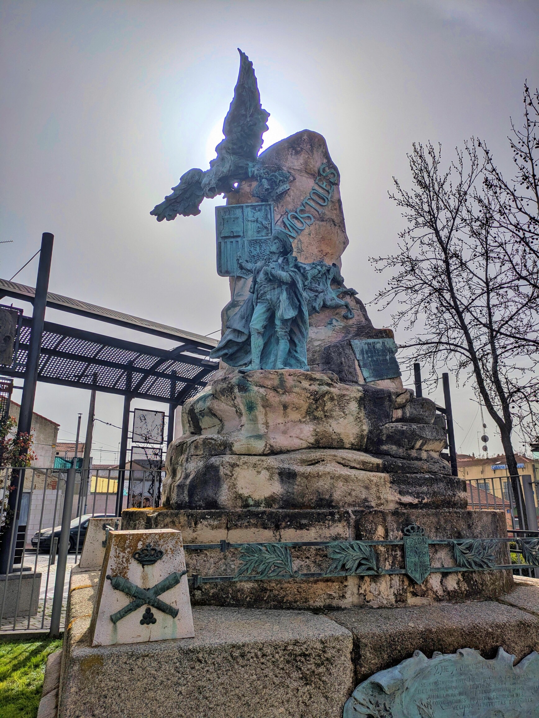 Uno de los primeros puntos históricos que encontré fue el monumento relacionado con el Dos de Mayo de 1808. Allí está la figura del Postillón, el mensajero que llevó el famoso bando de independencia desde Móstoles hacia otros pueblos para avisar del levantamiento contra los franceses. Es curioso porque mucha gente pasa por delante sin fijarse demasiado, pero esa figura representa algo bastante importante de la historia.