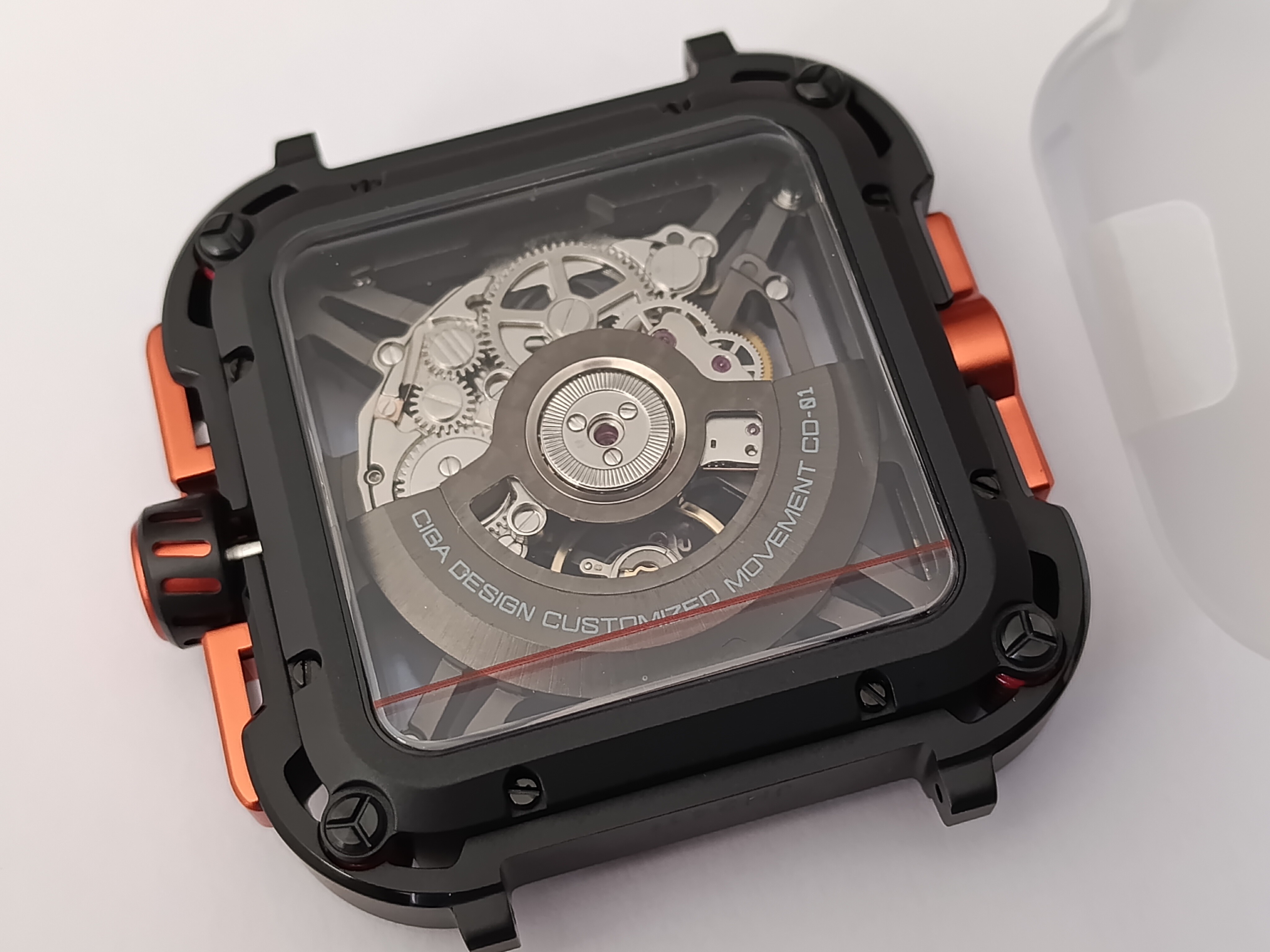 No os voy a aburrir con muchos detalles, el calibre es un Seagull modificado por Ciga y denominado por ellos CD-01 y se puede ver perfectamente tanto por delante como por detrás (Perdón, olvidé quitar los plásticos protectores)