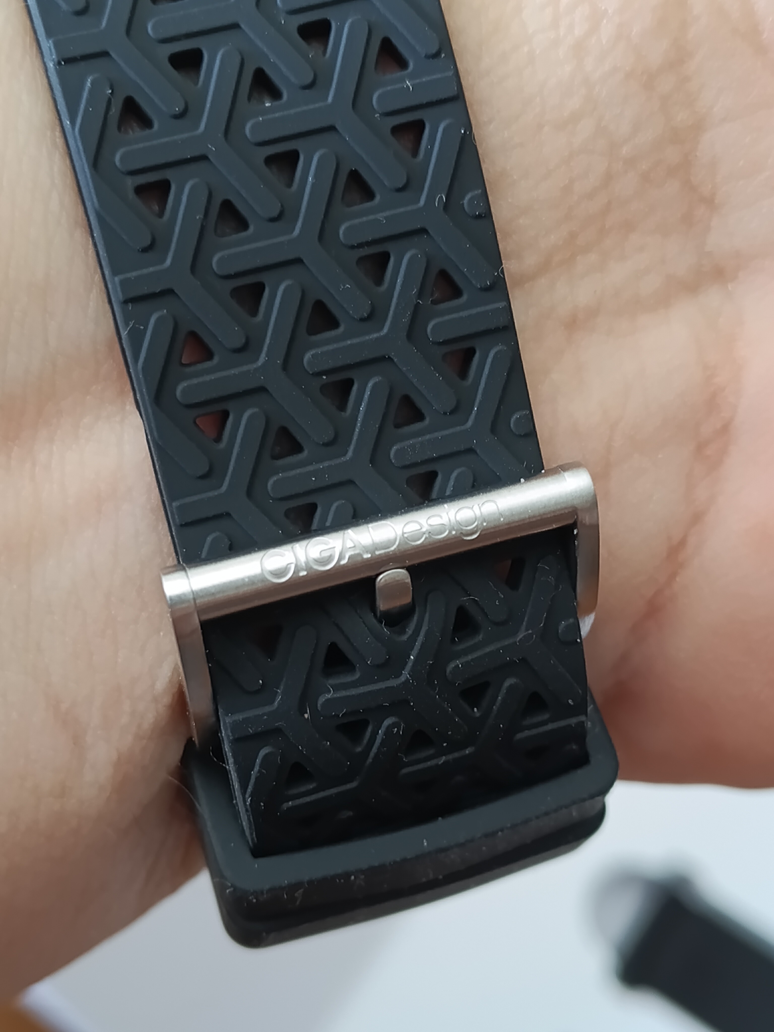 Como pudisteis ver un poco más arriba, viene con dos correas, una de silicona y otra de tela (un poco cortas ambas para mí muñeca de unos 19cm de diámetro), ambas de buen tacto y firmadas.