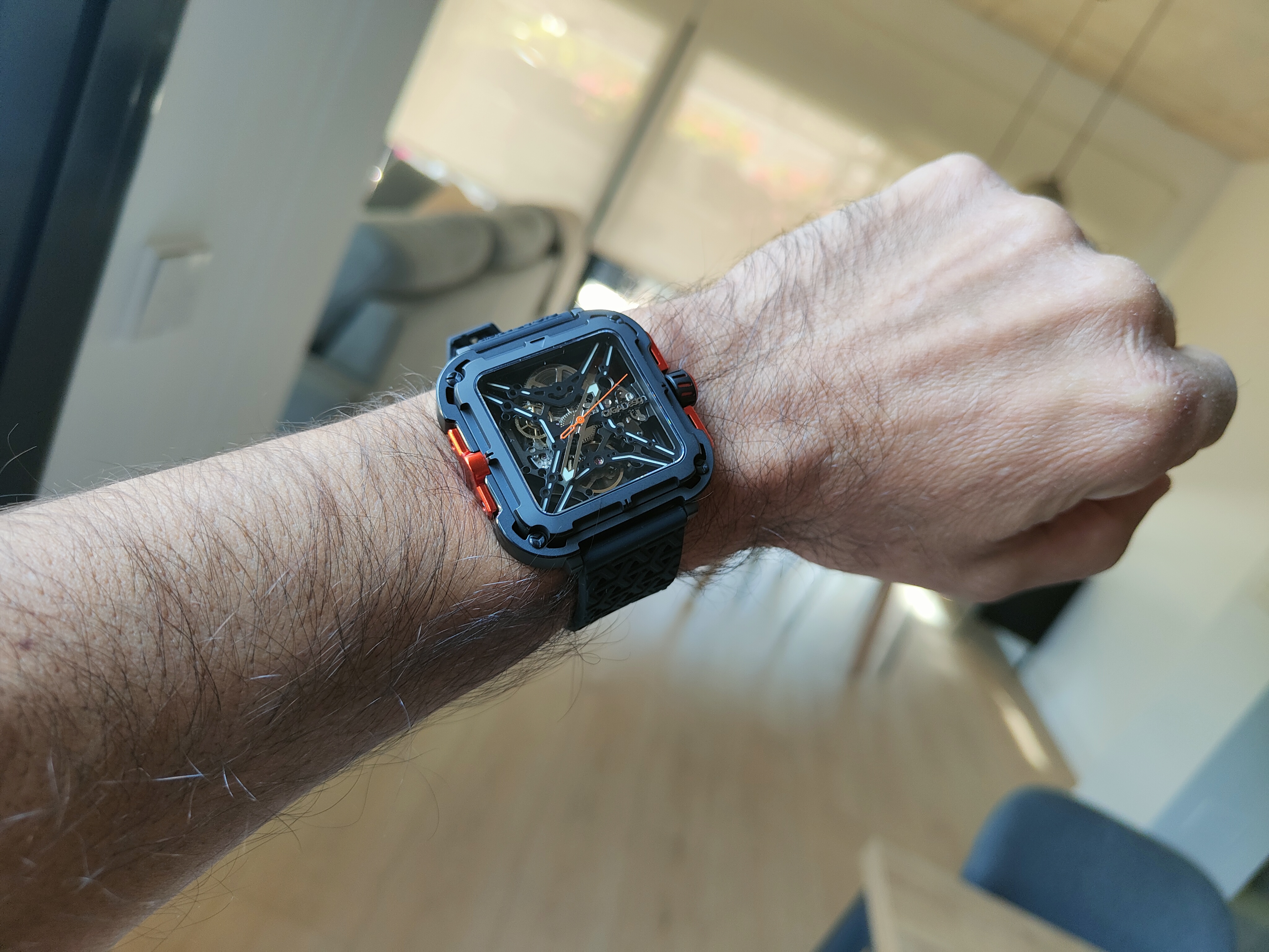 El naranja es el que más llama la atención, los toques naranjas me hubiera gustado que fueran un poco más mate, pero en conjunto me parece el que mejor representa la idea de tener un reloj diferente a todos los demás de la colección. También es en el que mejor se distingue la hora.