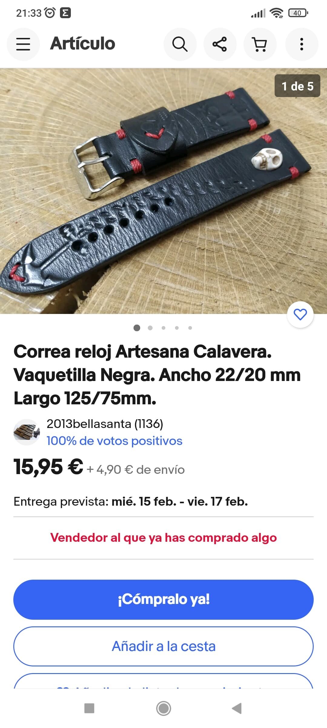 Tras avisar al vendedor y esperando alguna chorrada tipo te doy 5-10 euros y te lo quedas, me propone un reintegro decente … y en ese tiempo lo empiezo a ver. El reloj necesita una correa verde y con el reembolso tengo suficiente para unas cuantas