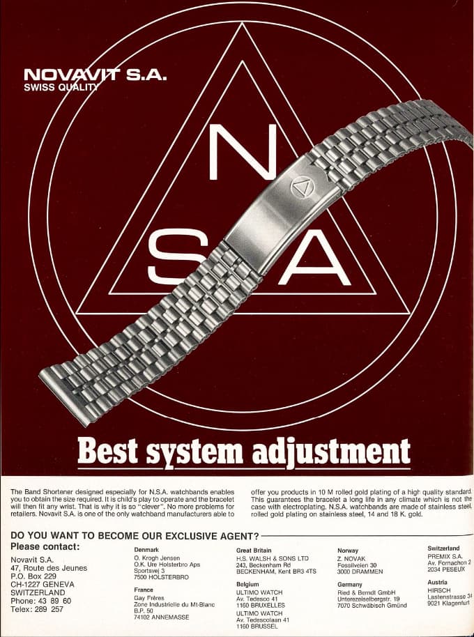 Se trataría de una resucitada NSA (la original, la famosa Novavit SA suiza que fabricaba brazaletes para todas las grandes marcas, quebró a finales de los 90 y se liquidó por completo en 2001).