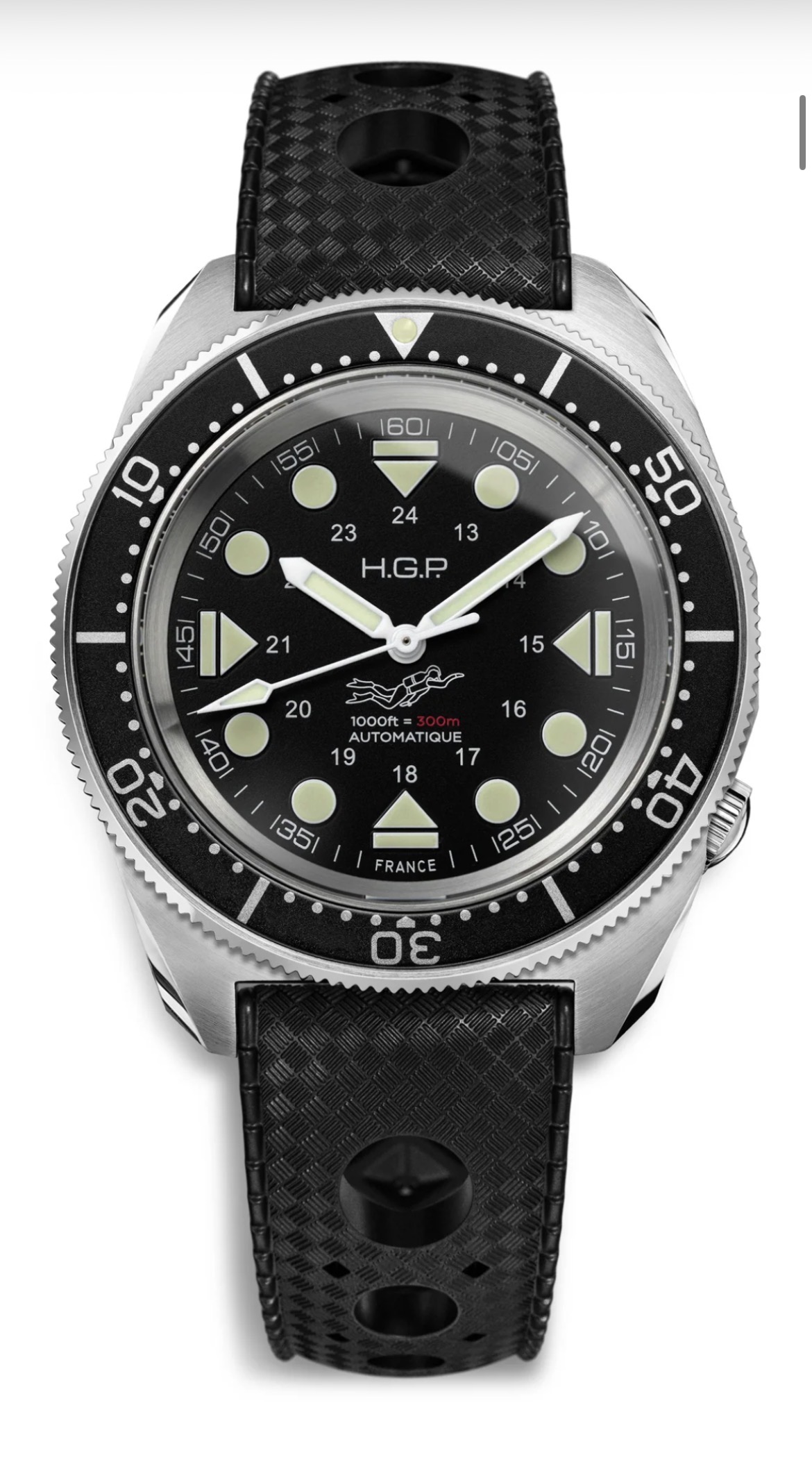 Si fuera para mí, el HGP 200, me gustan los relojes sencillos, que no tengan recarga en el dial. El 300 lo veo hasta abigarrado, con eso índices tan gordos, las indicaciones horarias, el buceador. A favor el calibre Citizen, pero estéticamente prefiero el hermano menor.