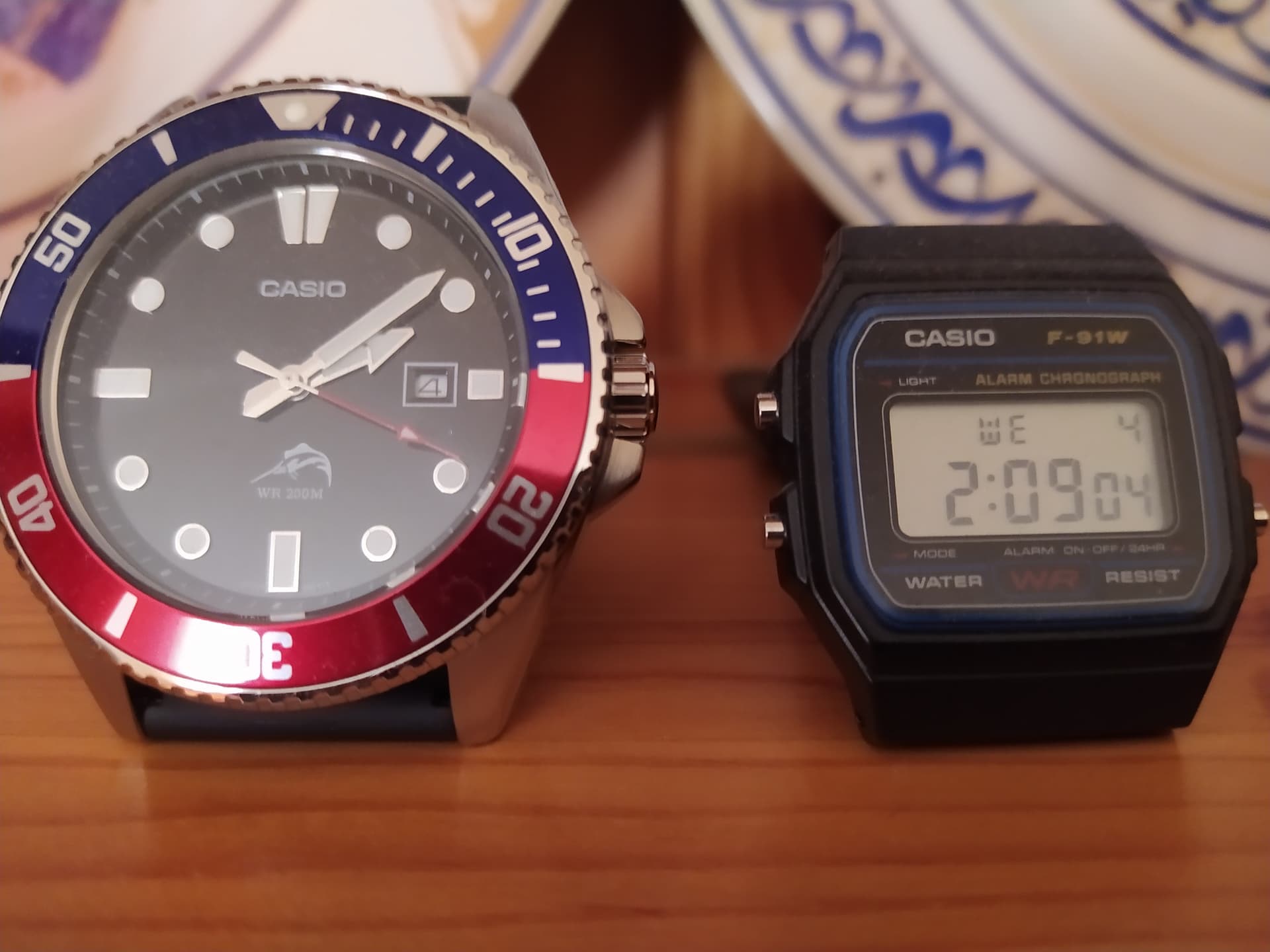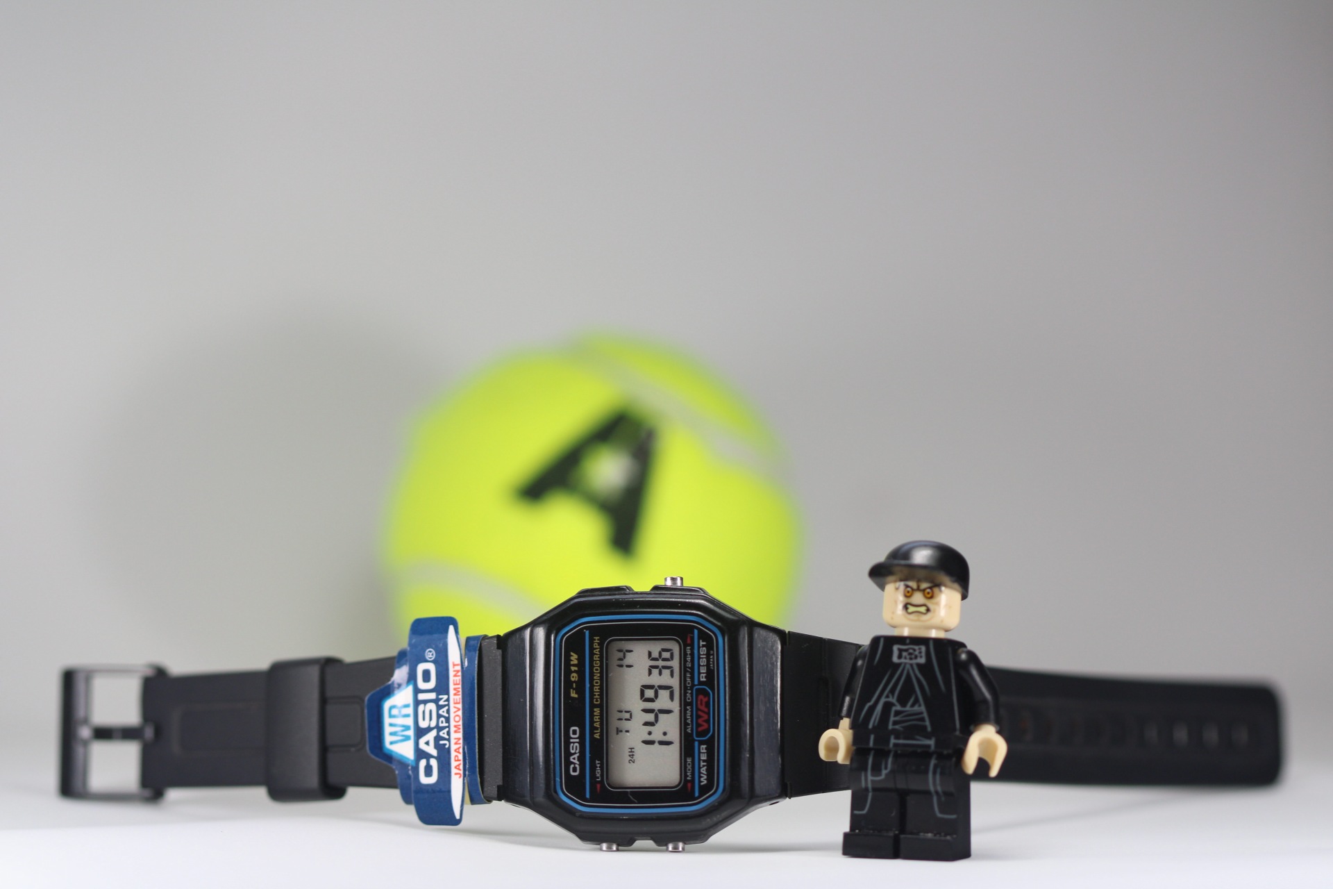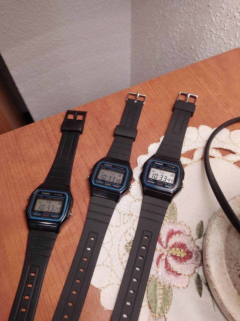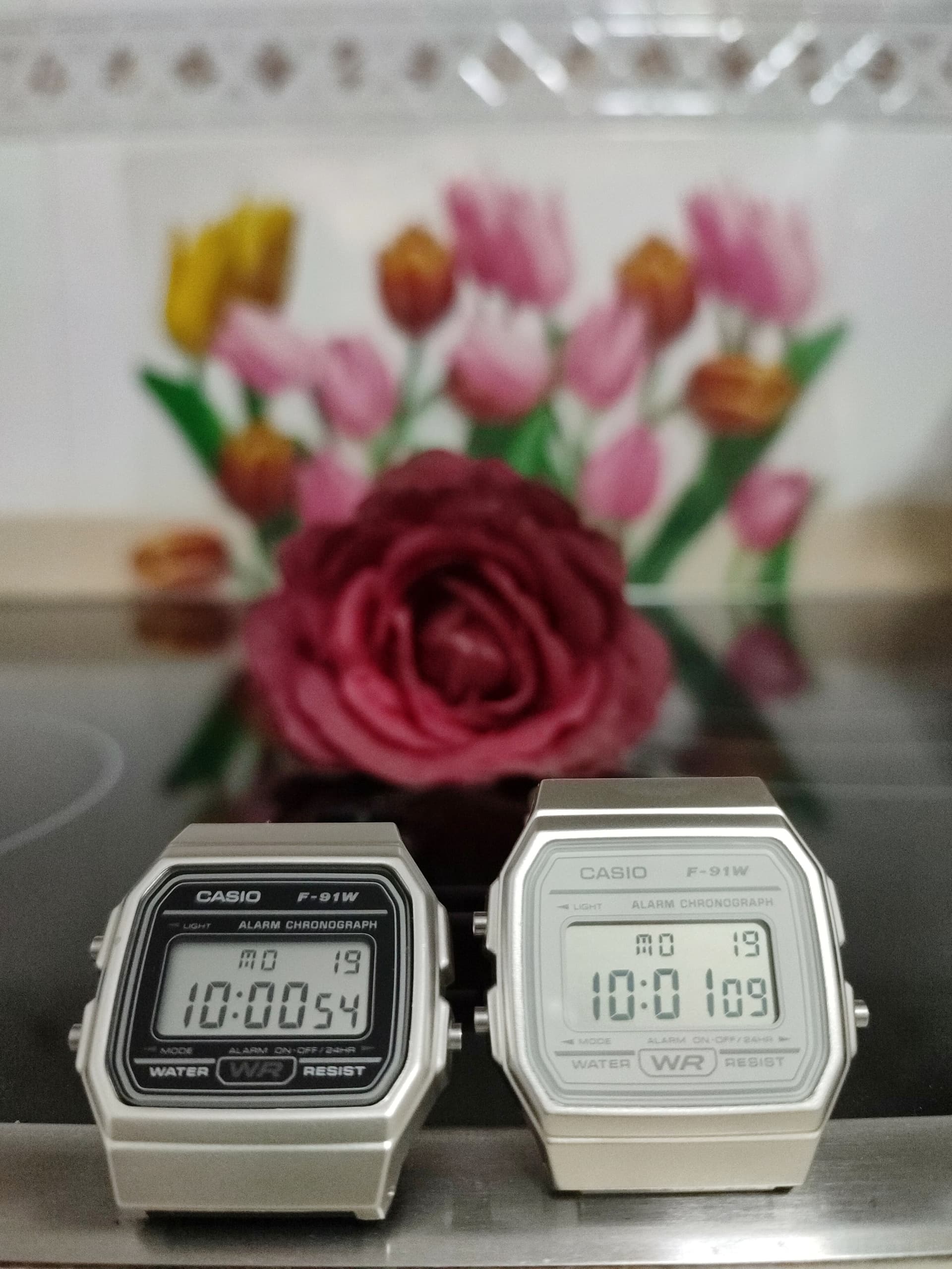 Buenos días, el Casio F-91W es el Casio más famoso de todos los F, creo que incluso ha superado al icónico F-100 pero el diseño del display y el tipo de caja está inspirado en el F-84, F-86 y F-87 y antes que estos Casio fabricó relojes que eran iguales pero no tenían alarma.