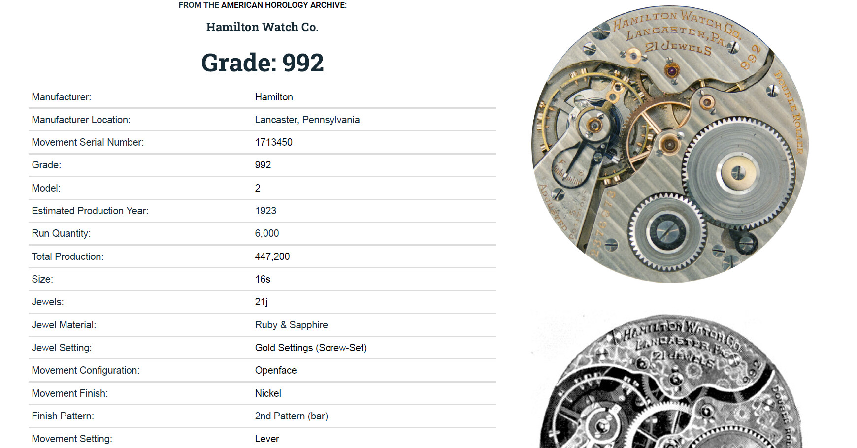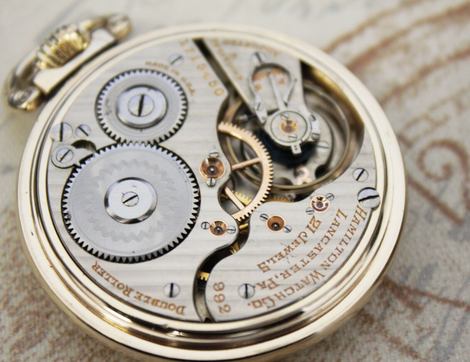 Maravilloso reloj. Pero no es suizo, es de Lancaster, Pensilvania, tal y como reza el calibre. Hamilton Watch Co. es estadounidense al 100%. Creo que @anon86768095 y @Sergi_c05 podrán dar información abundante sobre esa época en que, creo recordar, los suizos se dedicaban a imitar sin pudor las maravillas que se producían al otro lado del Atlántico.