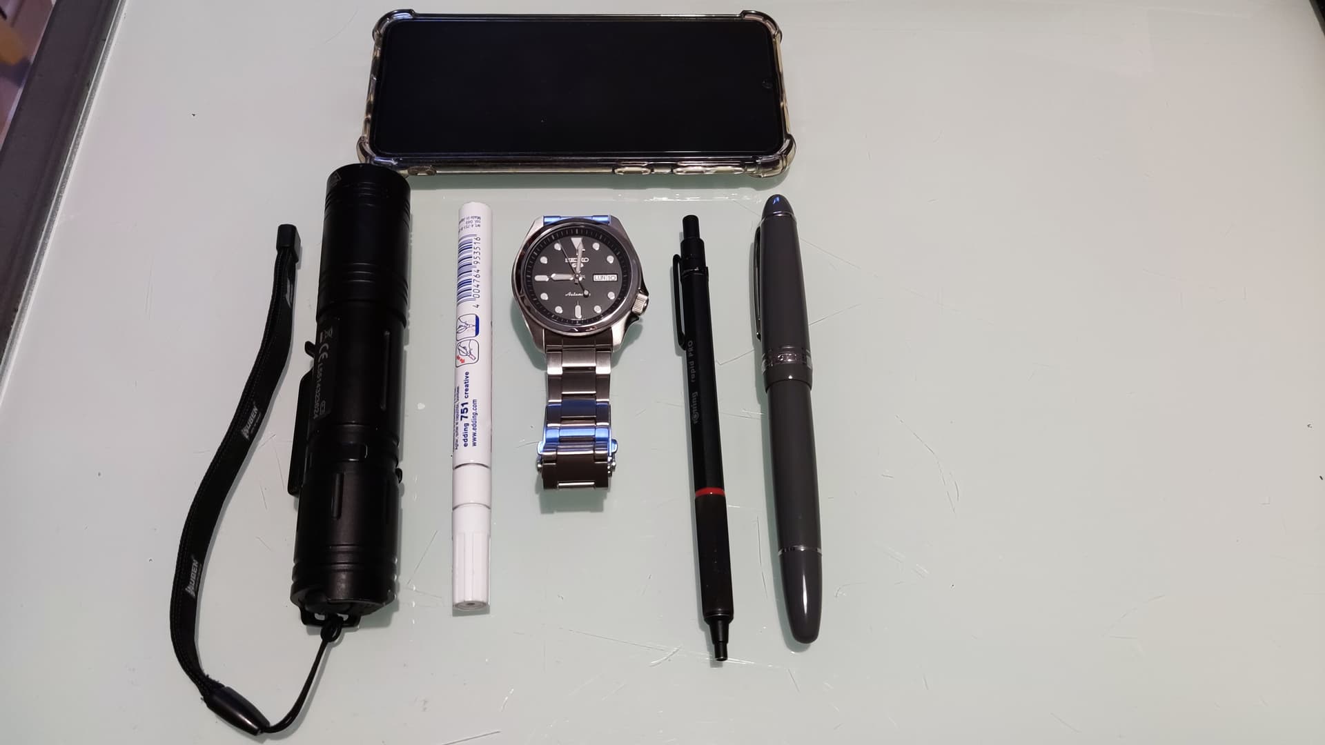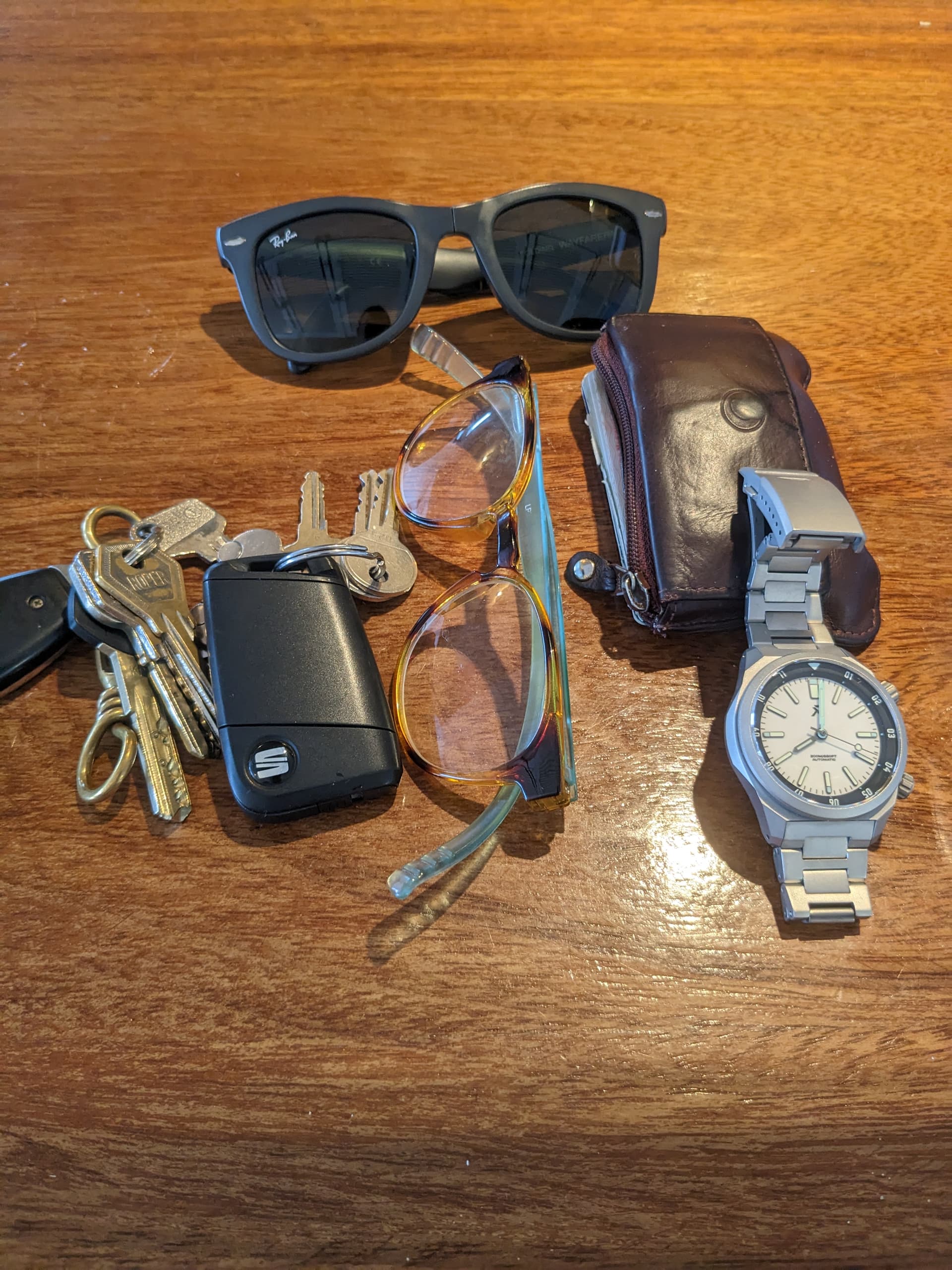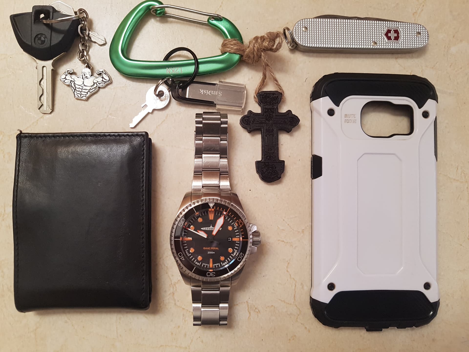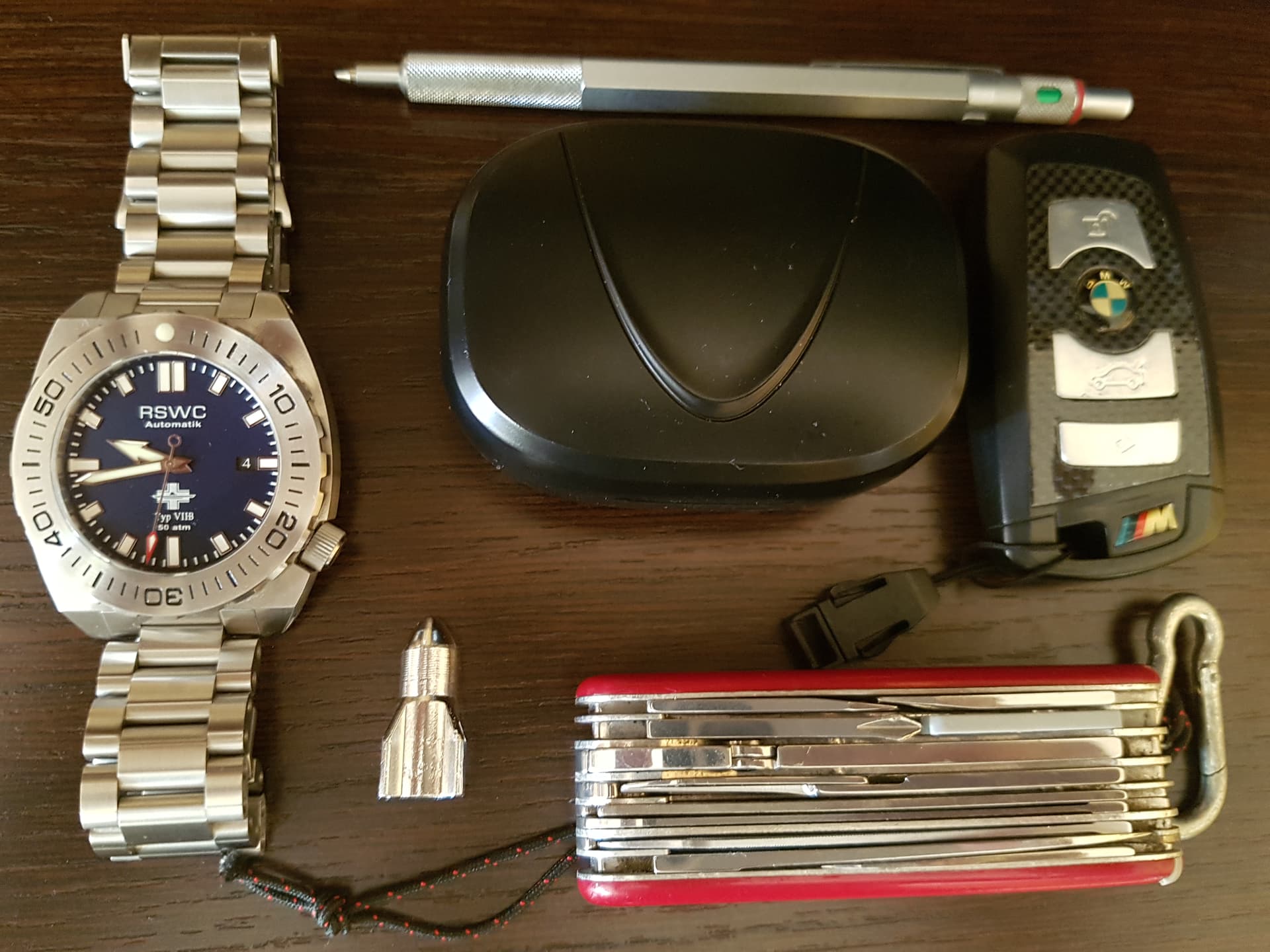 Es más, cada día o en cada circunstancia llevas o llevamos un EDC distinto. En mi caso si voy a la playa, o al curro, o de viaje, varía el números de multiusos, o gafas de natación o el número de relojes, en fin qué se yo … las cosas que nos hacen el viaje o la vida más cómodos, incluyendo cargadores de móviles, bolígrafos, mecheros, y un largo etcétera. ![]()