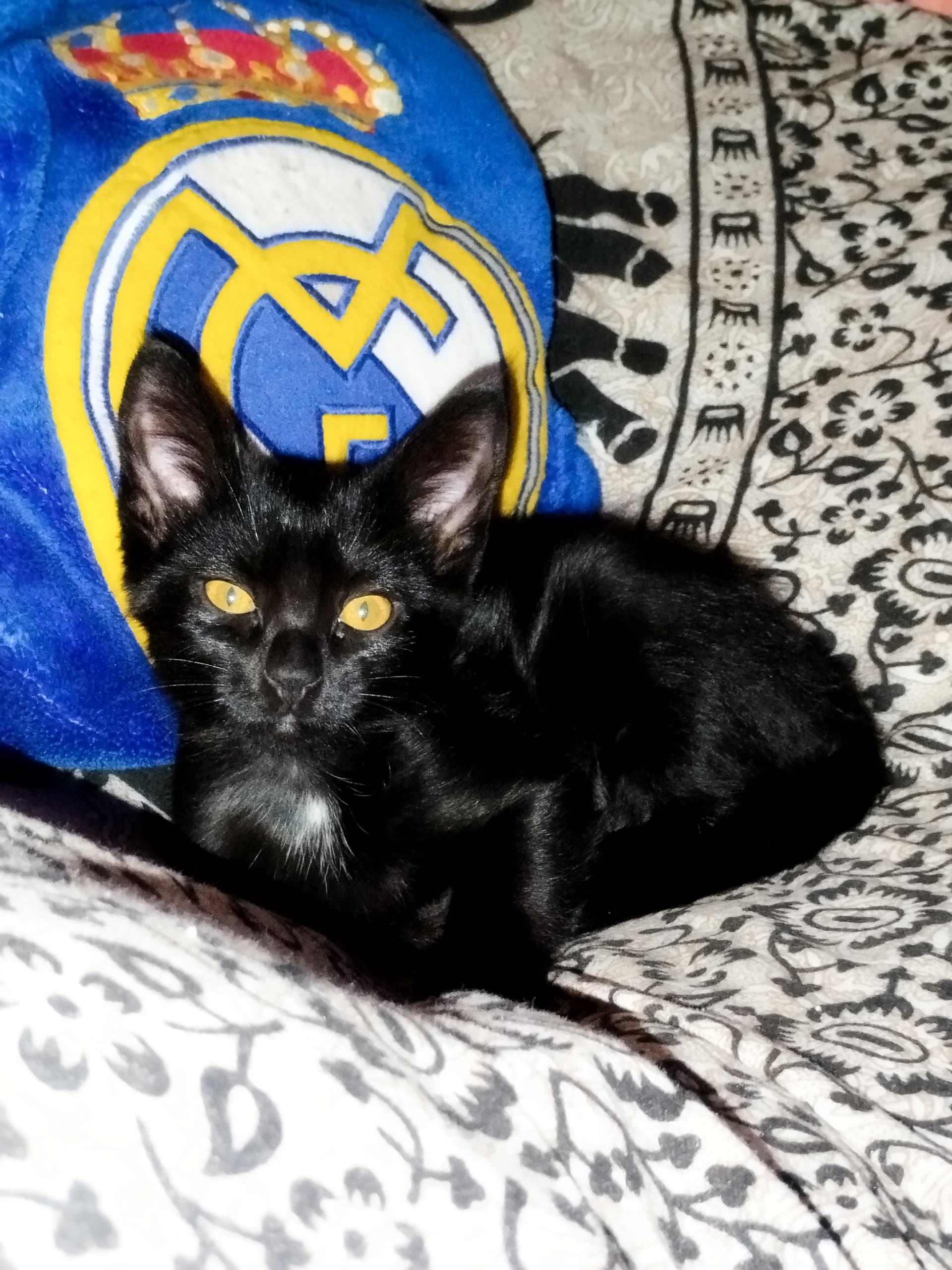 Este es chocolate, dando un paseo por el monte el año del covid lo encontramos abandonado, era un cachorro, siempre me gustaron los animales pero nunca los gatos, mi mujer y mi hijo me convencieron y para casa se vino. Desde entonces mi relación con los gatos ha cambiado, en el pueblo donde tengo casa y vamos los fines de semana, pasó hará unos dos años una gatina errante sin dueños, la empecé a alimentar, y luego empezaron a venir otros, todos ellos gatos de pueblo sin dueño y que subsisten de lo que pillan. En estos momentos estaré alimentando a unos 12 (me he puesto en contacto con una asociación a ver si poco a poco podemos ir castrandolos), hasta hace poco les dejaba unos 4 kg de pienso y les llegaba, de pronto el consumo disparó, suponiendo que algún perro se lo comía, puse una cámara y sorpresa, alimento a los 12 gatos, 4 zorros, unos cuantos cuervos…7kg a la semana de pienso. Los del pueblo no me entienden y me dicen que pase de ellos, que queréis que os diga me dan pena.
