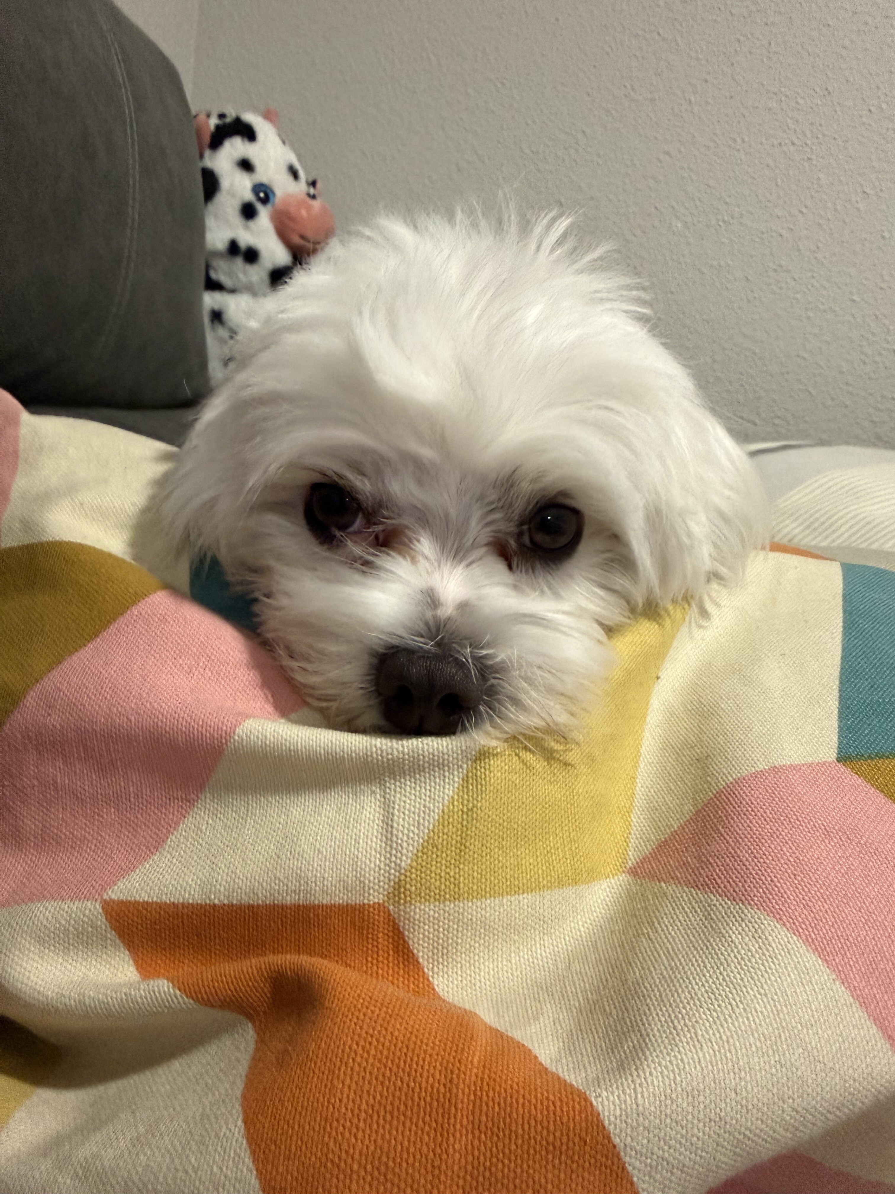Cierto, pero le dura poco. Los malteses no acaban de tener el pelo sedoso de los Yorkies y el clima húmedo de Barcelona no ayuda.