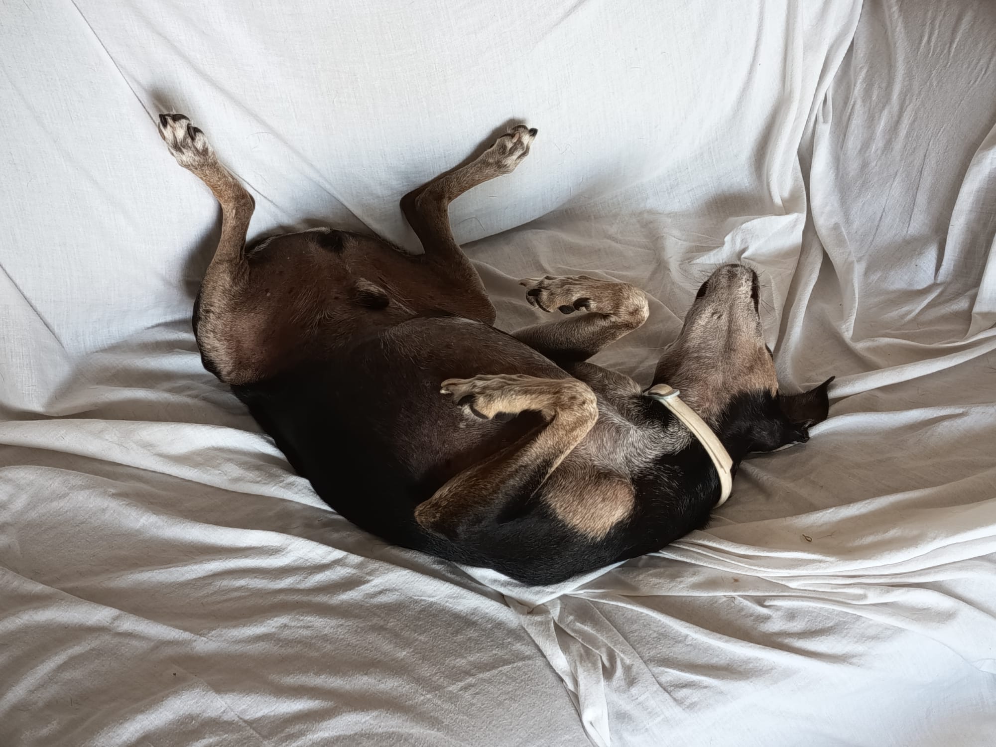 Esta era Paca, la perra a la que más he querido. Ya no está conmigo tras una enfermedad degenerativa de columna que me tuvo cuidándola sus últimos dos años.