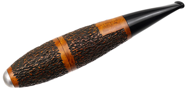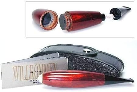 Se trata de una pipa en línea, también llamadas “cigar pipe” o “torpedo pipe”, que parece ser se diseñaron en los años 20 para permitir fumar a bordo de los dirigibles que tan de moda estuvieron, aquellos majestuosos buques del aire, y evitar el riesgo de deflagraciones indeseadas, al evitar la salida de chispas o pavesas de la pipa.