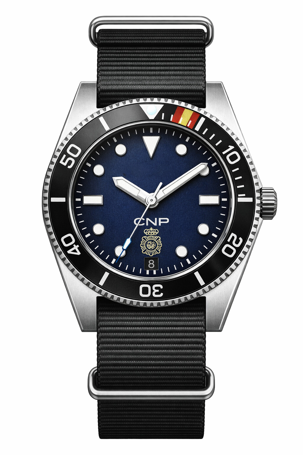 - Esfera: Color azul empleado en los coches de la policía nacional. Logo de la policía y CNP.