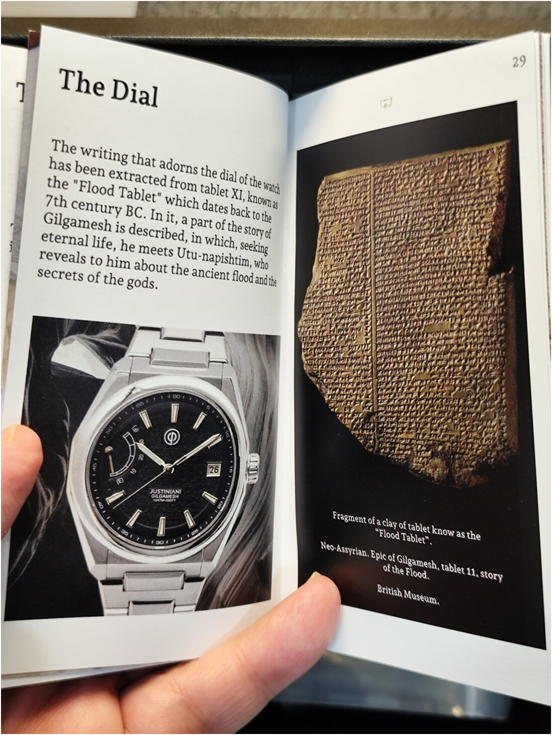 La característica diferencial del reloj es la esfera, personalizada con un fragmento de la Epopeya en escritura cuneiforme, concretamente de la parte en que se relata la gran inundación, como podéis leer perfectamente.