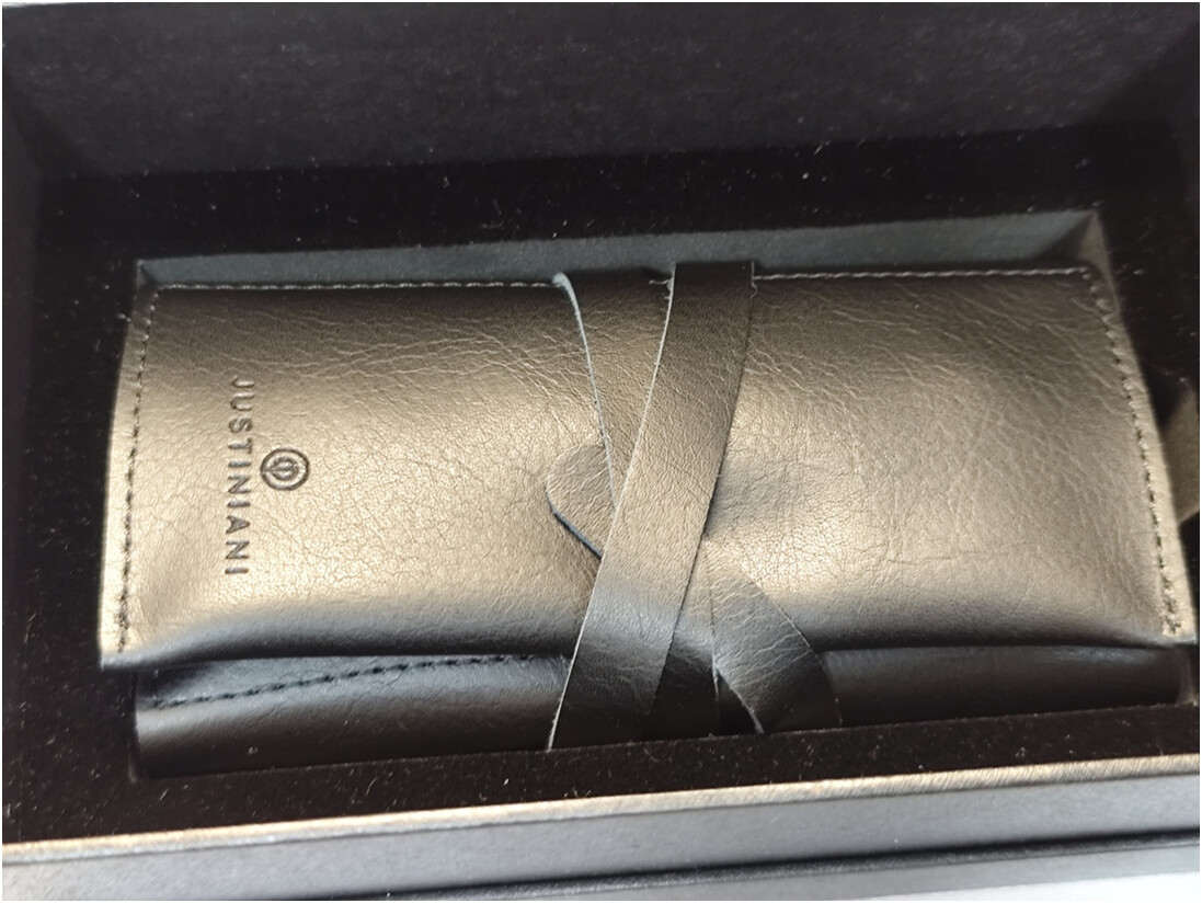 Y el reloj en su funda de cuero multifunción, que incluye también los dos biseles adicionales