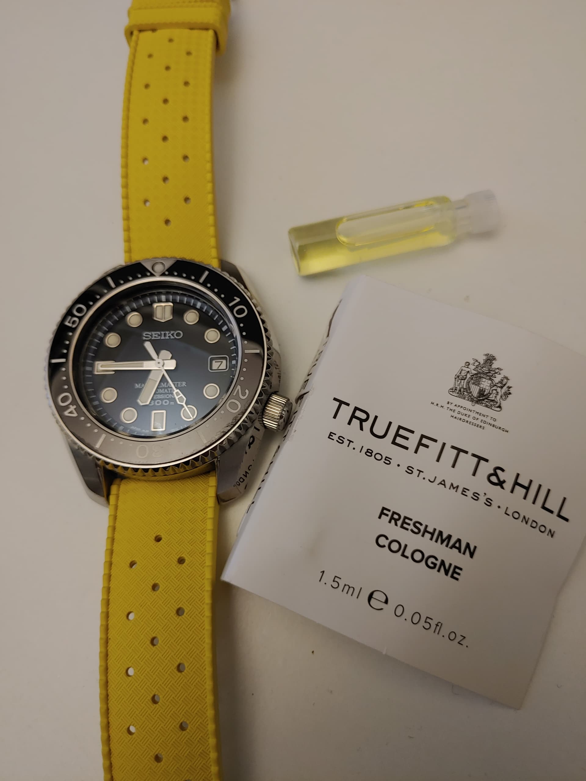 He decidido empezar a gastar muestras que andan por los cajones y qué mejor que hagan juego con el reloj del día, esta vez el MM300 vestido de verano.