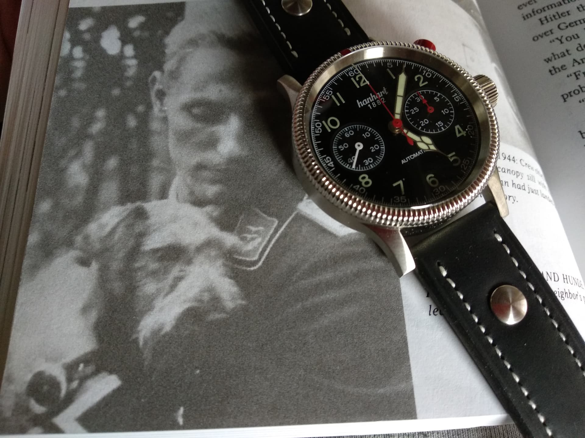 En 1938 la fábrica Hanhart, de la Selva Negra, lanzó el Calibre 40, que tenía como singularidad disponer de sistema de cronometraje monopulsante (un único botón para activar, parar y poner a 0). Fue un reloj muy valorado en su momento, que tuvo pronto una evolución hacia configuración con dos botones, ya durante la IIGM.