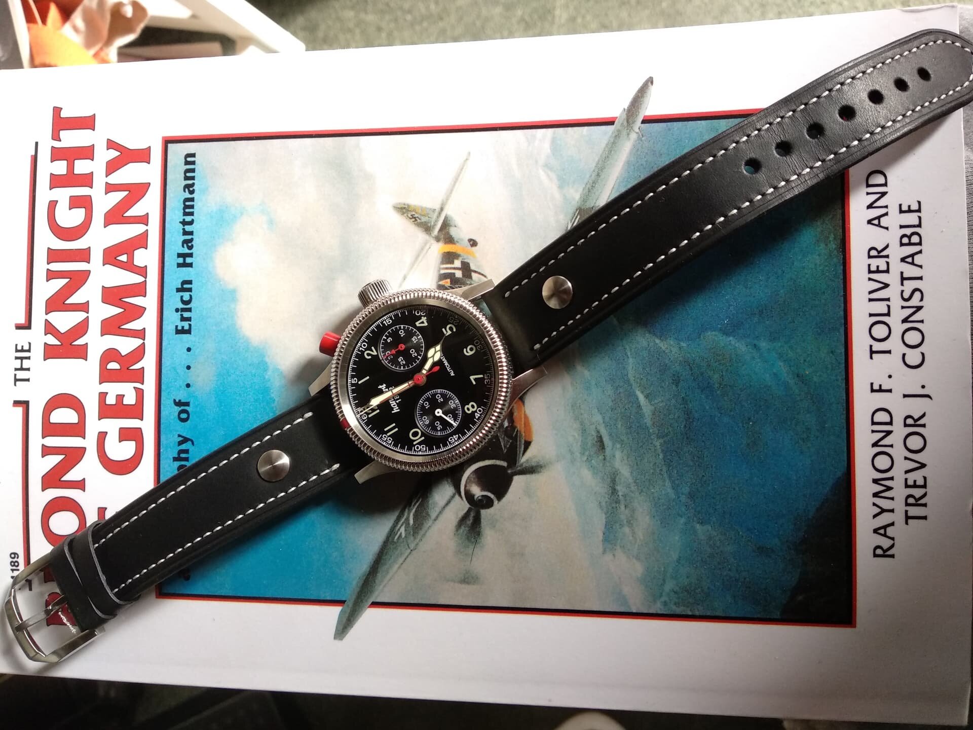 Pues bien: a finales de los años noventa Hanhart sacó una edición réplica de aquellos modelos, y en 2016 se decidió a actualizarlos, incluyendo zafiro, resistencia al agua y un calibre que tomando como base la Valjoux 7753 fue convenientemente modificado para actuar como monopulsante.