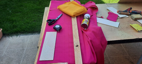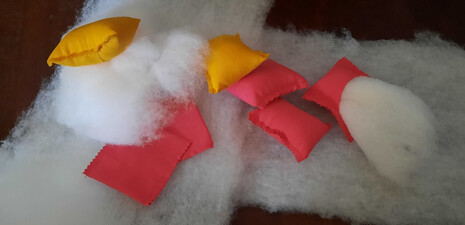 Cortar y coser la tela para las almohadillas, y rellenar de espuma de fibra.