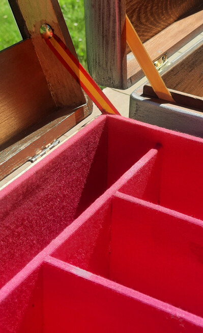Le he colocado bisagras de latón de mayor calidad y un cierre tipo maleta, también va bien un cierre tipo gatillo e incluso cierre con cerradura, (pero esas las dejaré para cuando os enseñe las de madera de nogal y cerezo).
