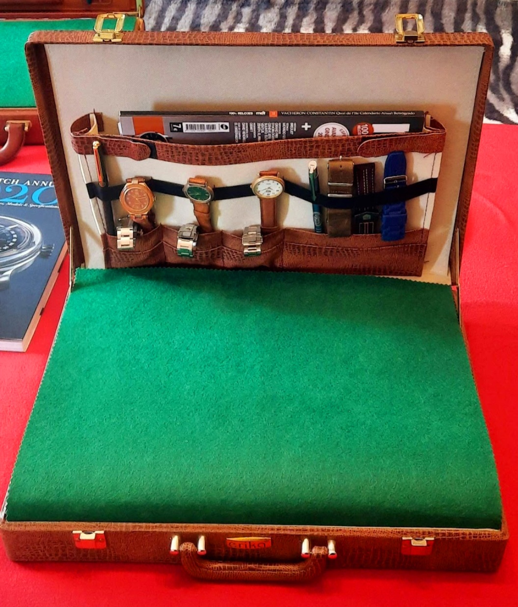 Opción 1: Maletín polipiel, usos múltiples, almohadillas para 12 a 17 relojes, mas 6/8 relojes o correas, accesorios y portadocumentos