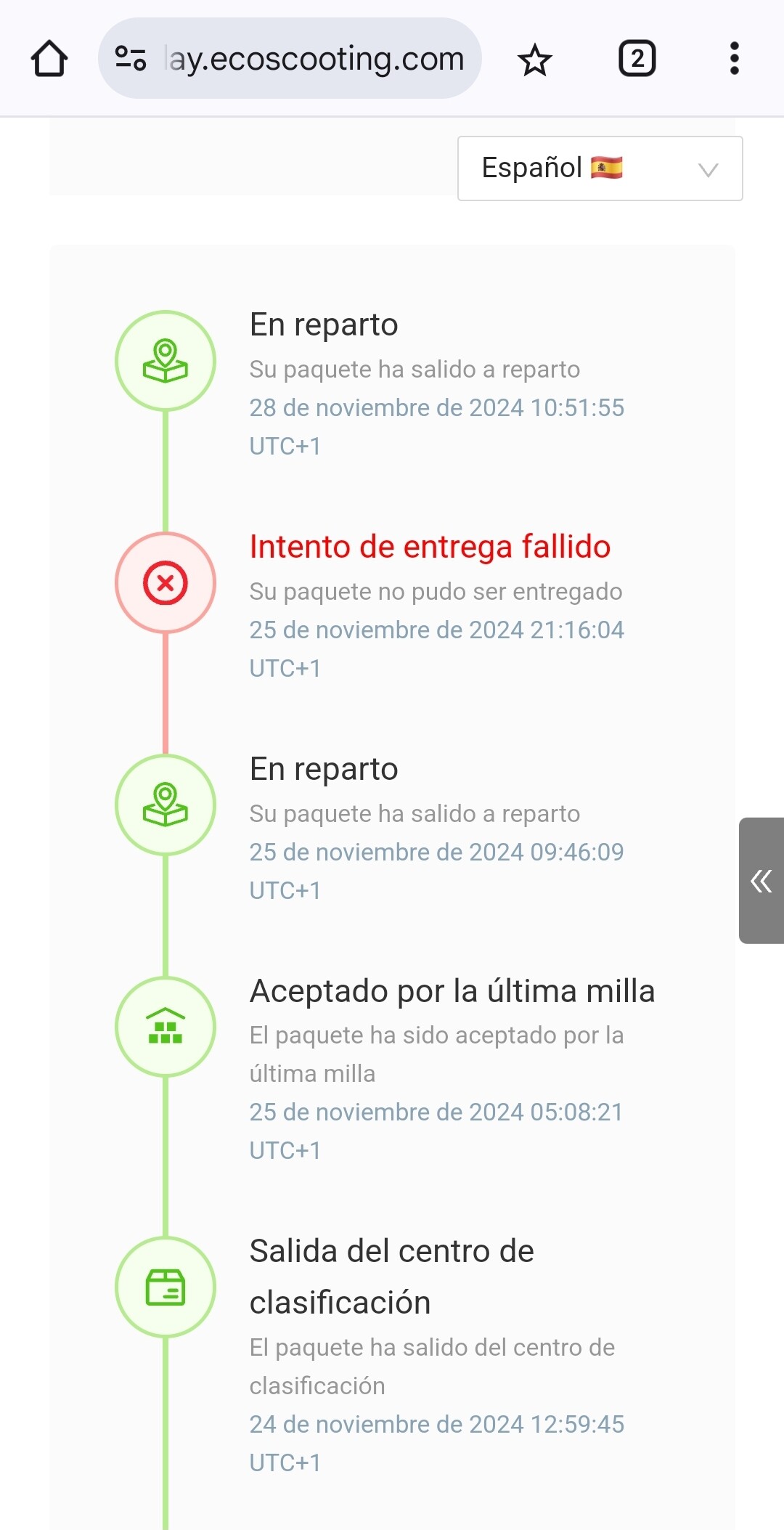 Asi me salen los seguimientos de los tres paquetes ahora mismo en la web de EcoScooting…