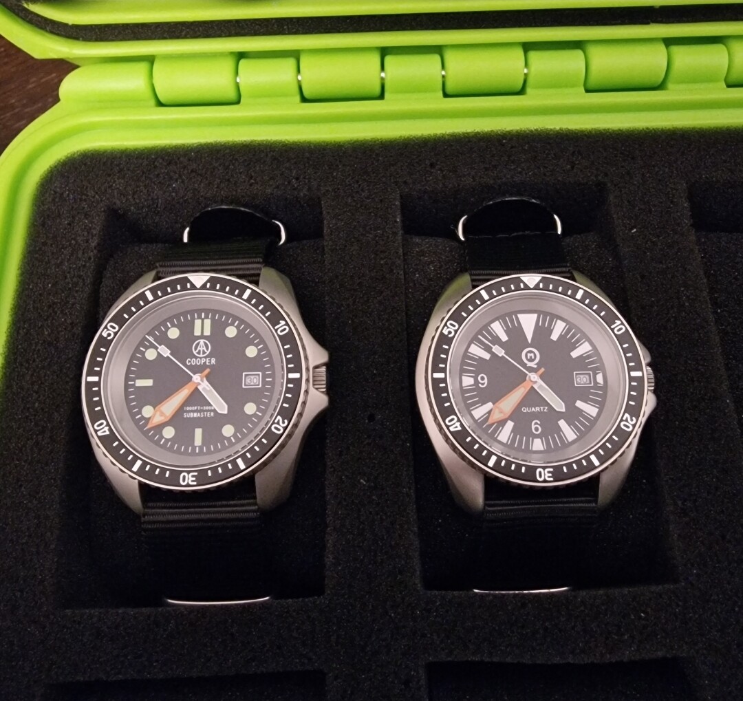 Los otros dos que me quedan por llegar son los mismos…el de la iquierda en acabado pvd y ambos sin la aguja minutera naranja…que creo que queda un reloj mas táctico con ambas agujas del mismo color.