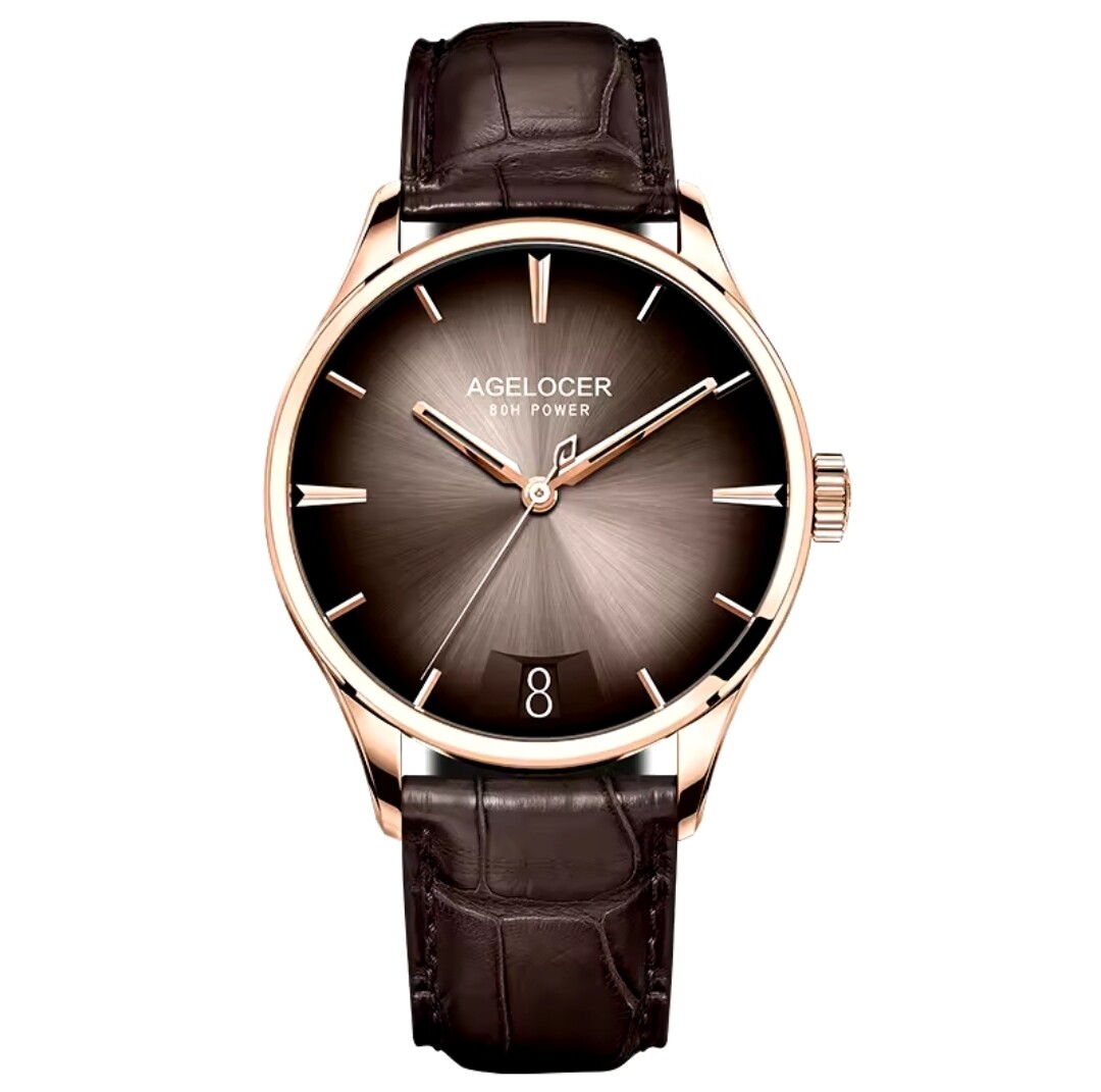 614,39€ | AGELOCER-reloj dorado de lujo para hombre, cronógrafo mecánico automático con calendario grande, regalo de cumpleaños