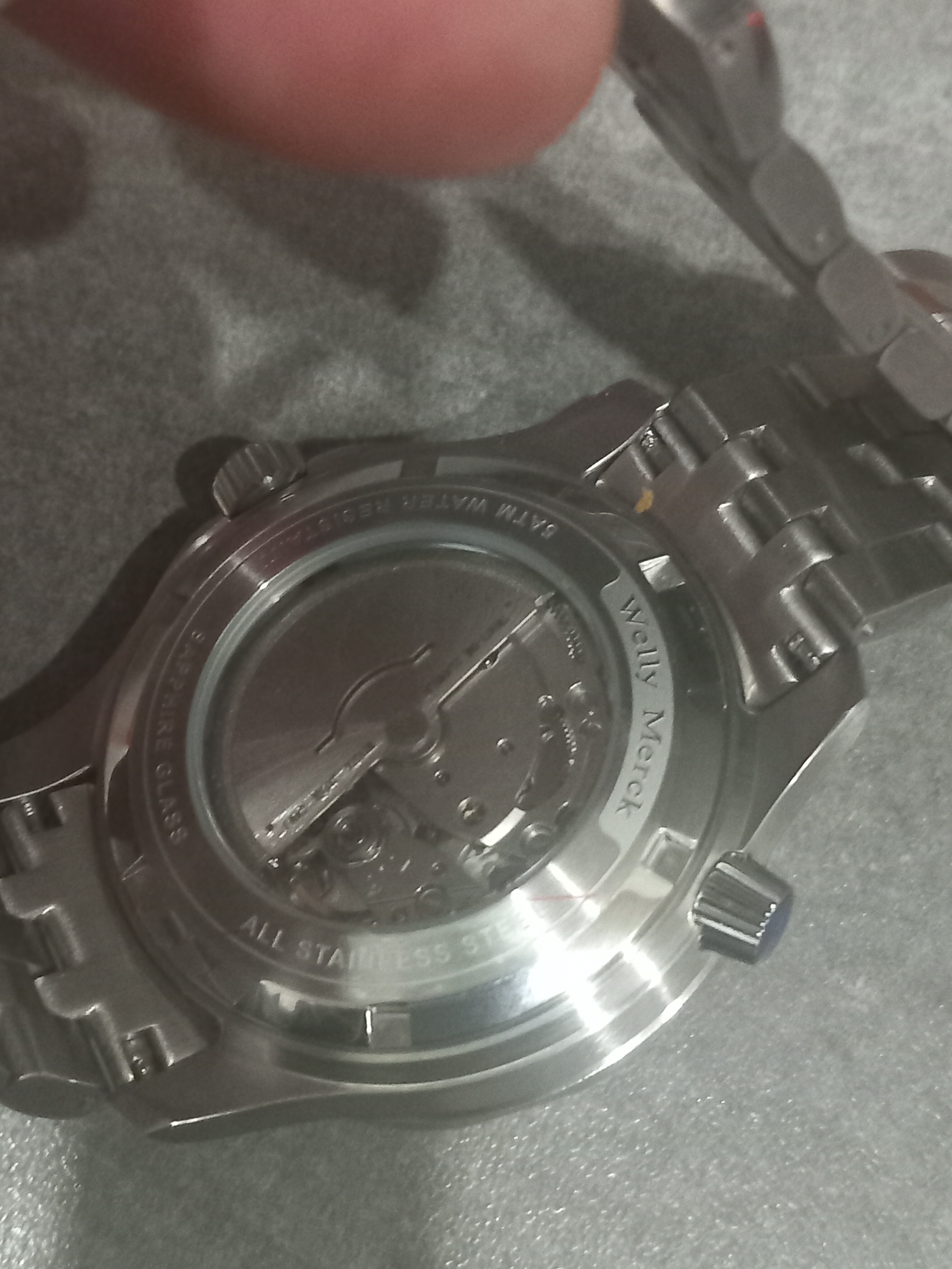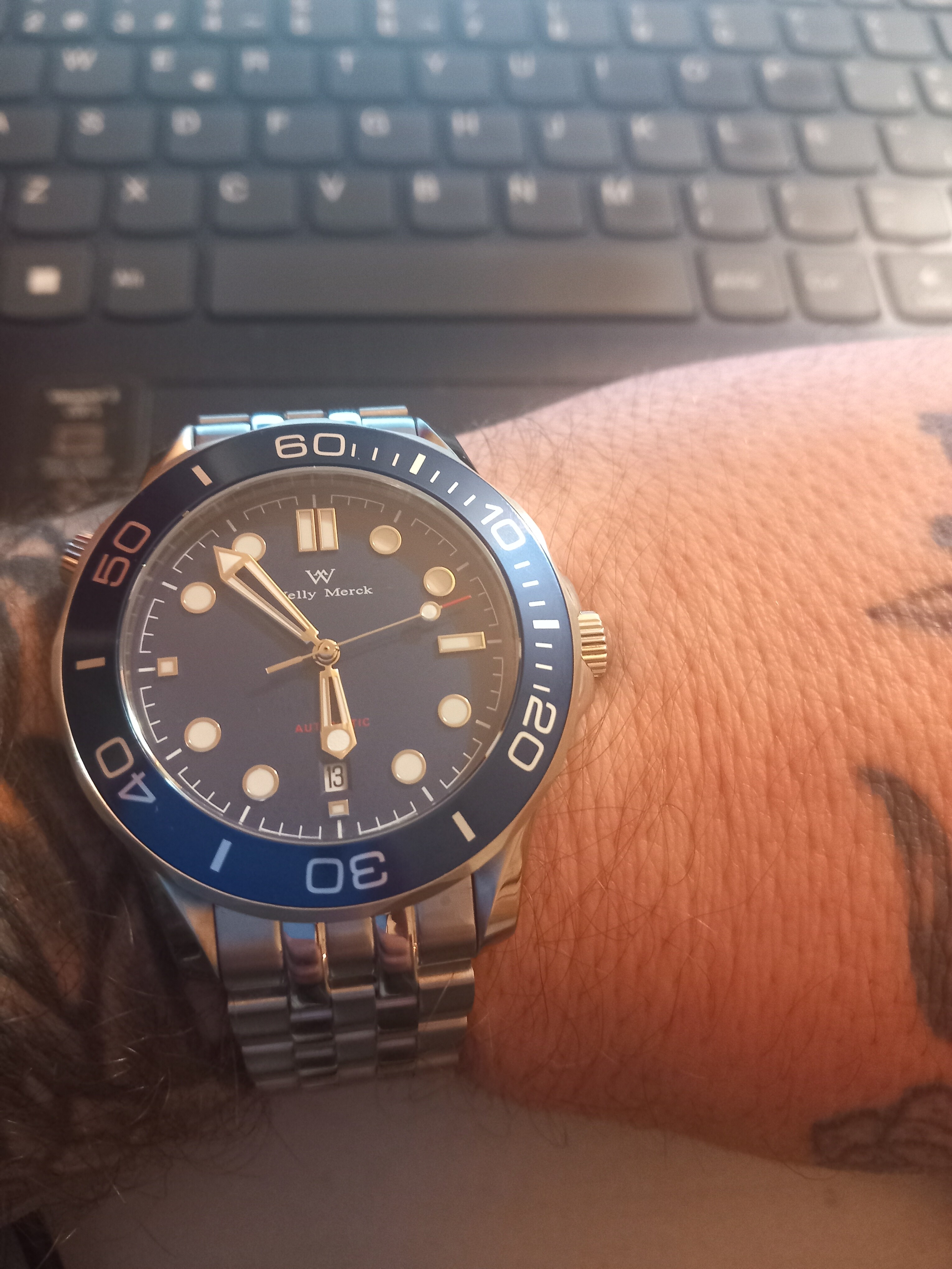 Yo pillé el Welly Merck, que le tenía ganas a esa marca. Pero ya comprado, me di cuenta que marca 44 de caja… espero que sea un error en la descripción por que se me hace enorme, cada vez voy mas cómodo con relojes pequeños. Ya veremos a ver cuando llegue.