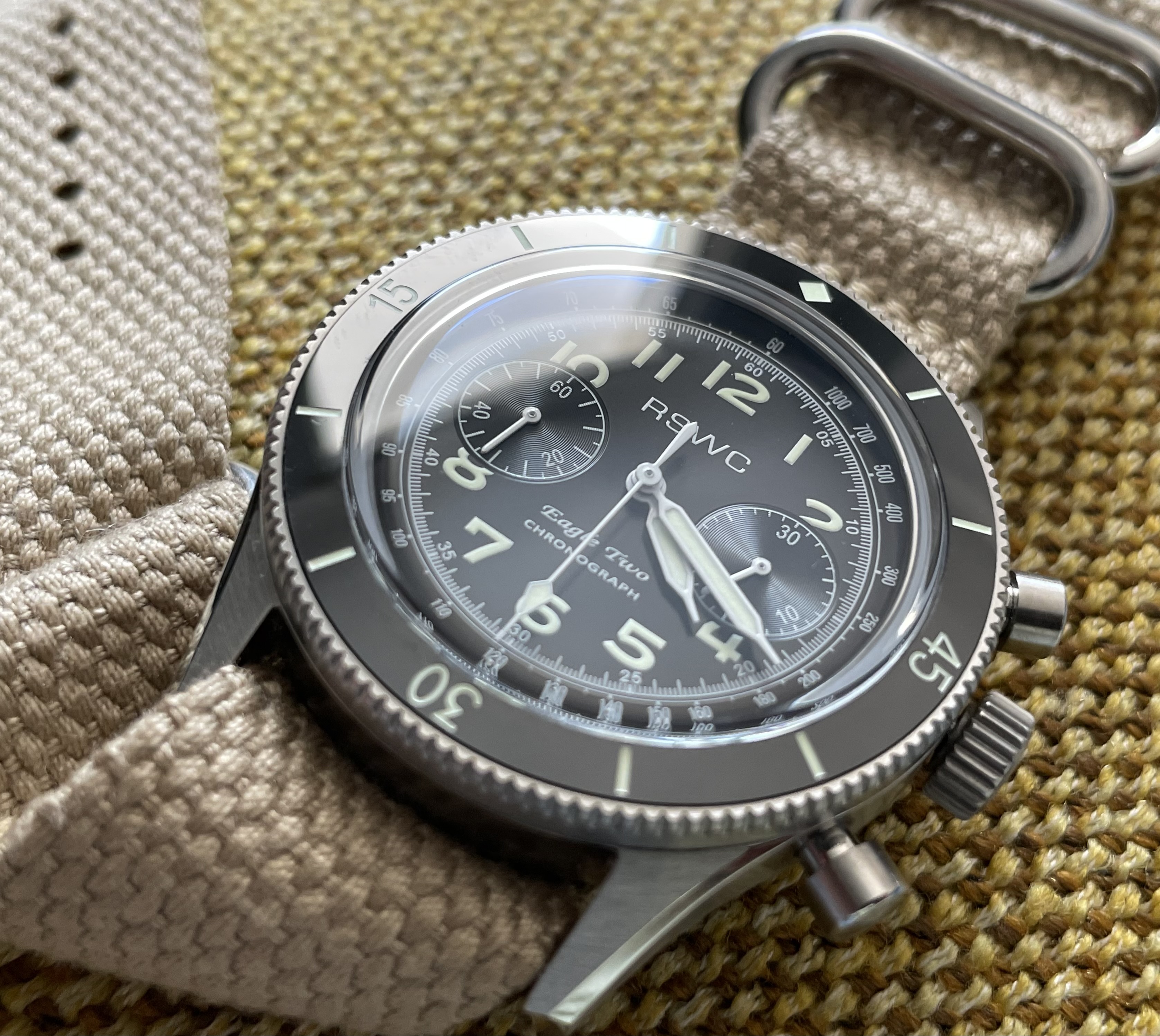 De hecho la caja es igual a la del Cadisen que tengo por aqui, pero sin corona roscada, y viene con una nato de nylon, muy cómoda y que hace destacar más la caja