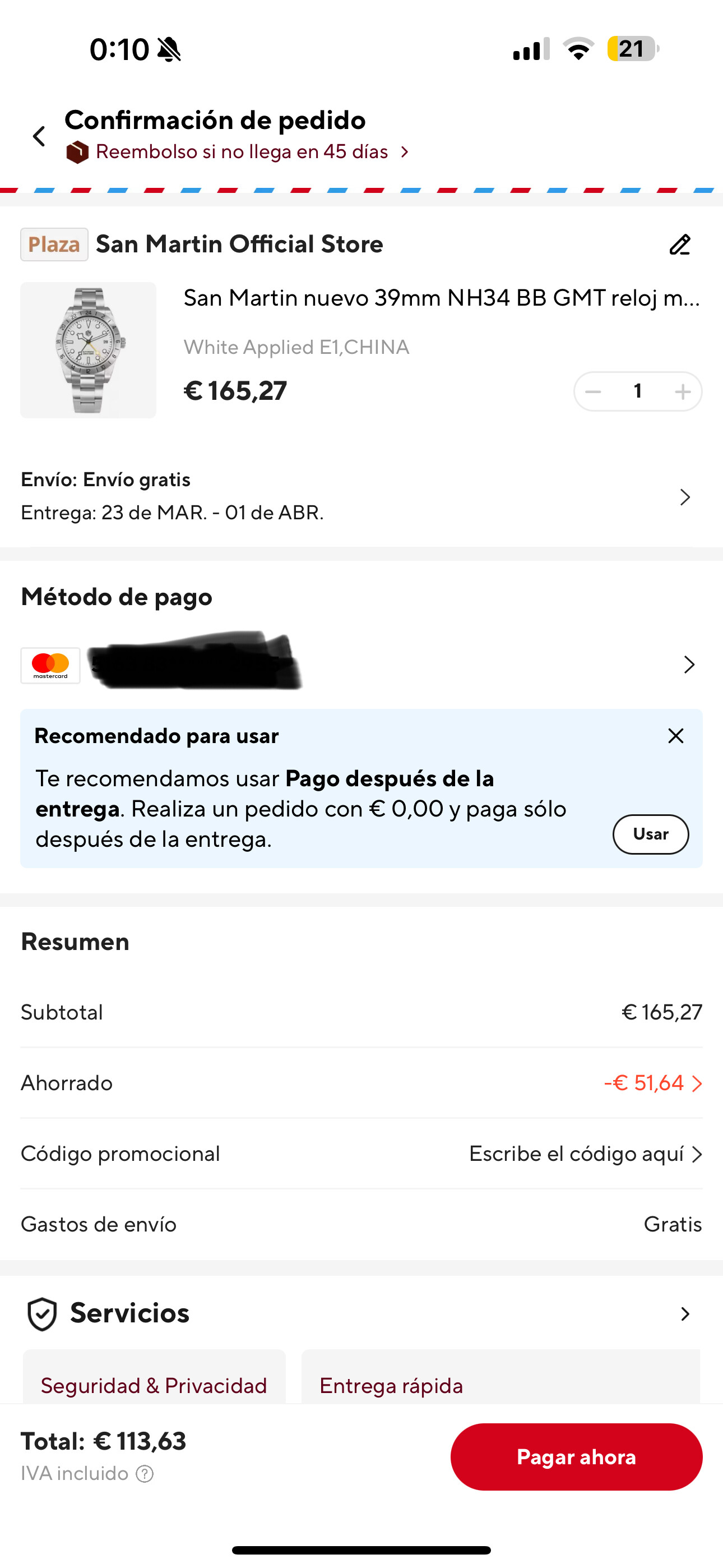Oye, me sale el tophill pepsi con caucho por 50,49 y con brazalete y negro por 61