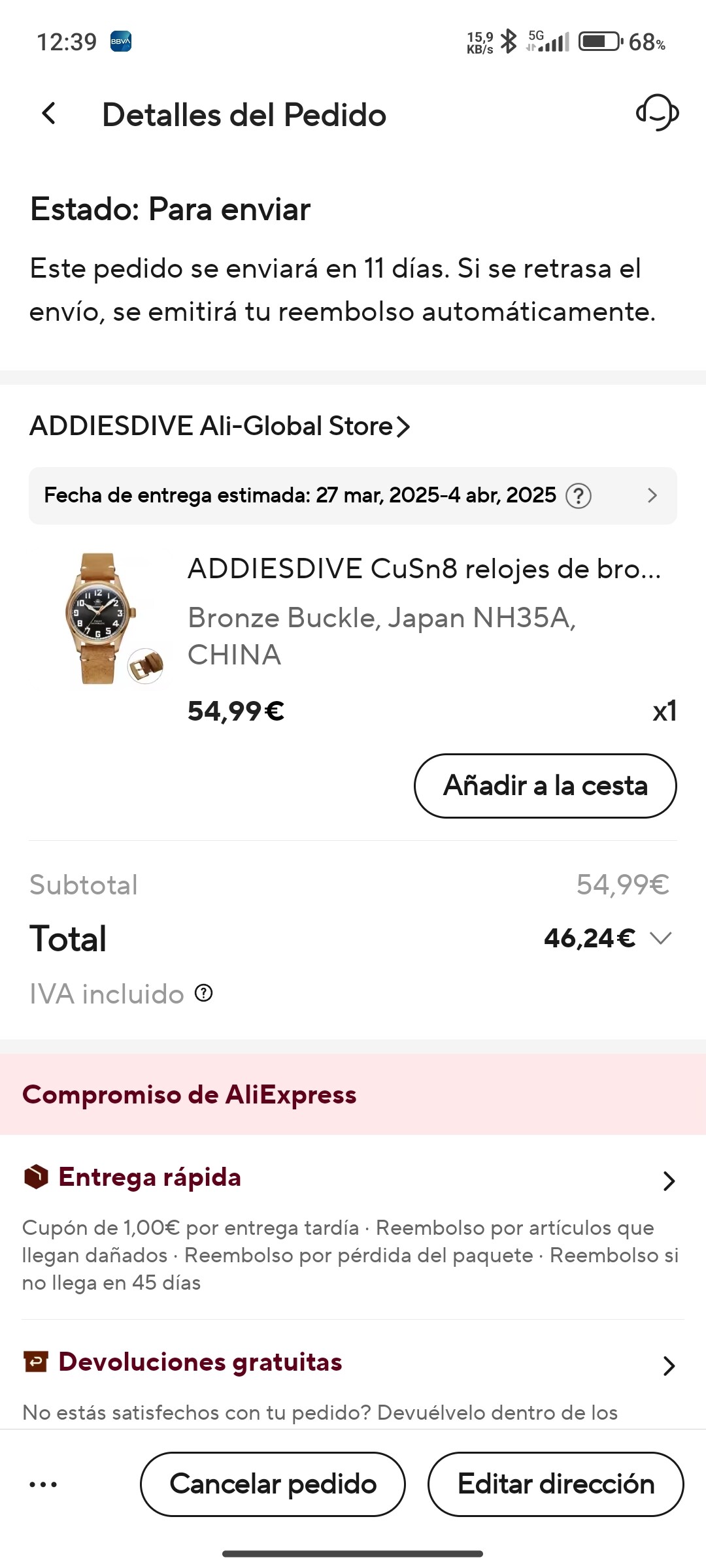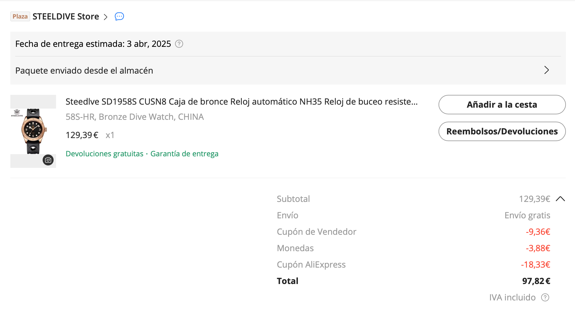 Oferta increíble,un reloj de bronce menos de 80 euros ya está muy muy bien,te lo digo yo que me compré el boderry de bronce en su momento y me salió por 120 o algo así