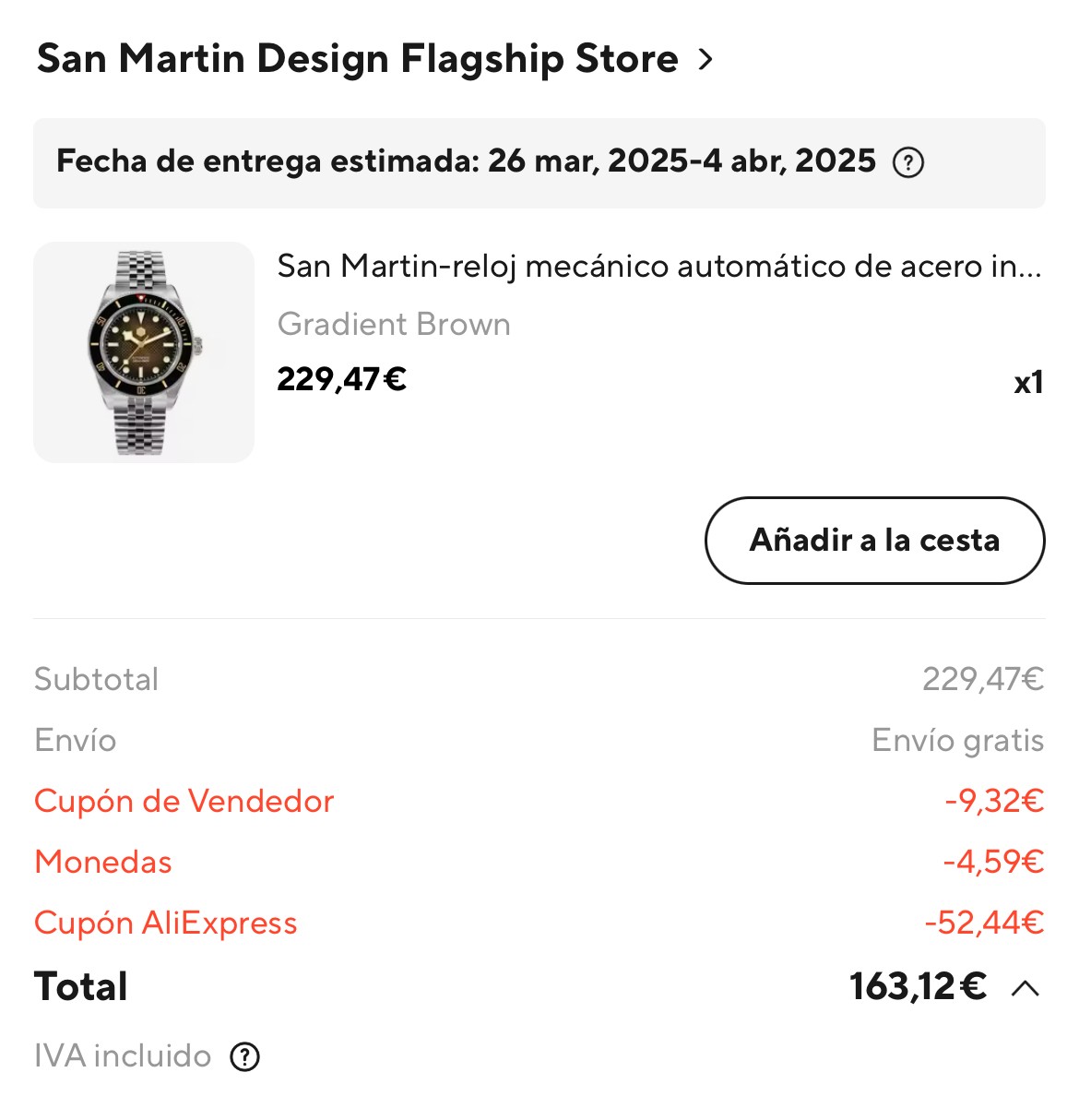 Es un súper precio . Un relojazo . Lo tengo y le puse una bonita correa con hebilla de bronce . Me gusta mucho este reloj, además tiene un lumen brutal y es de muy fácil lectura al tener esta esfera tan oscura y unas agujas más bien anchas . Un gran reloj que a mi me costo poco más de 100 euros. No te lo pienses .