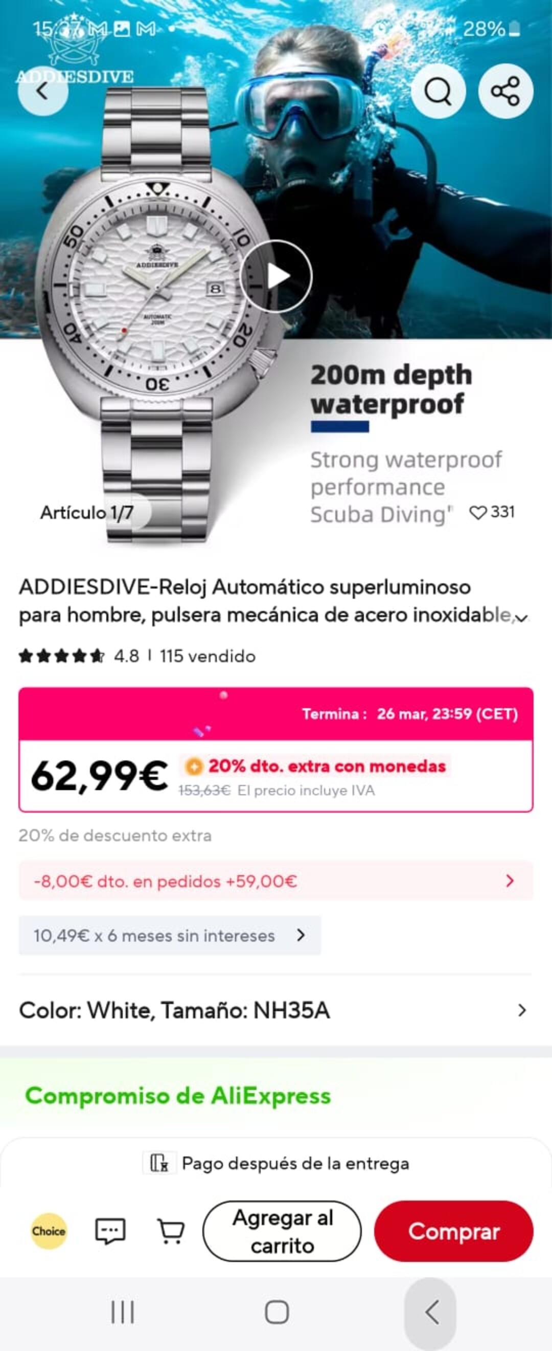 https://a.aliexpress.com/_EzAl3VS este compañero pero compralas siempre desde el apartado de monedas que siempre siempre tienen descuentos muy muy buenos,y abajo cuando escojes el color y medida pues coger el cierre si no tienes ninguno para ponerle porque por defecto te envían solo la correa.