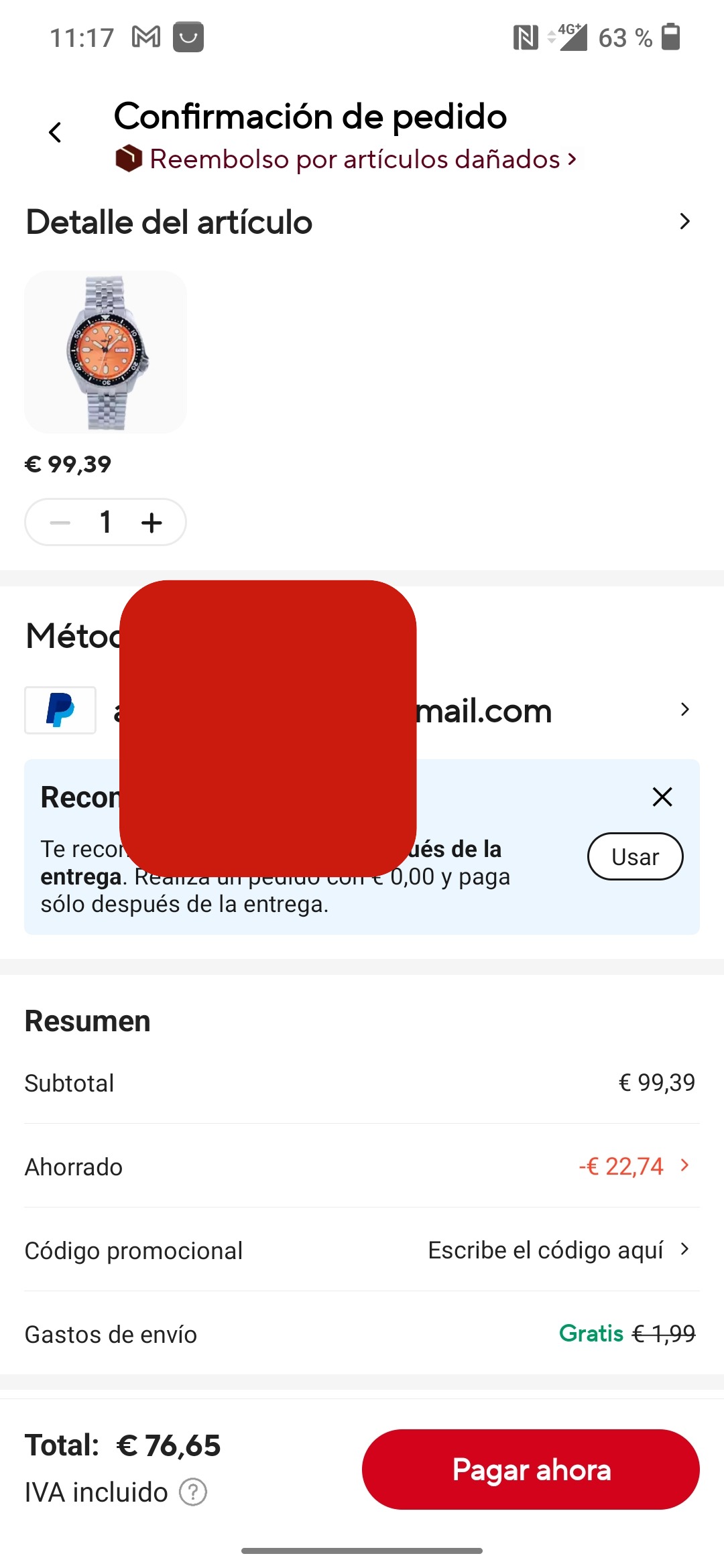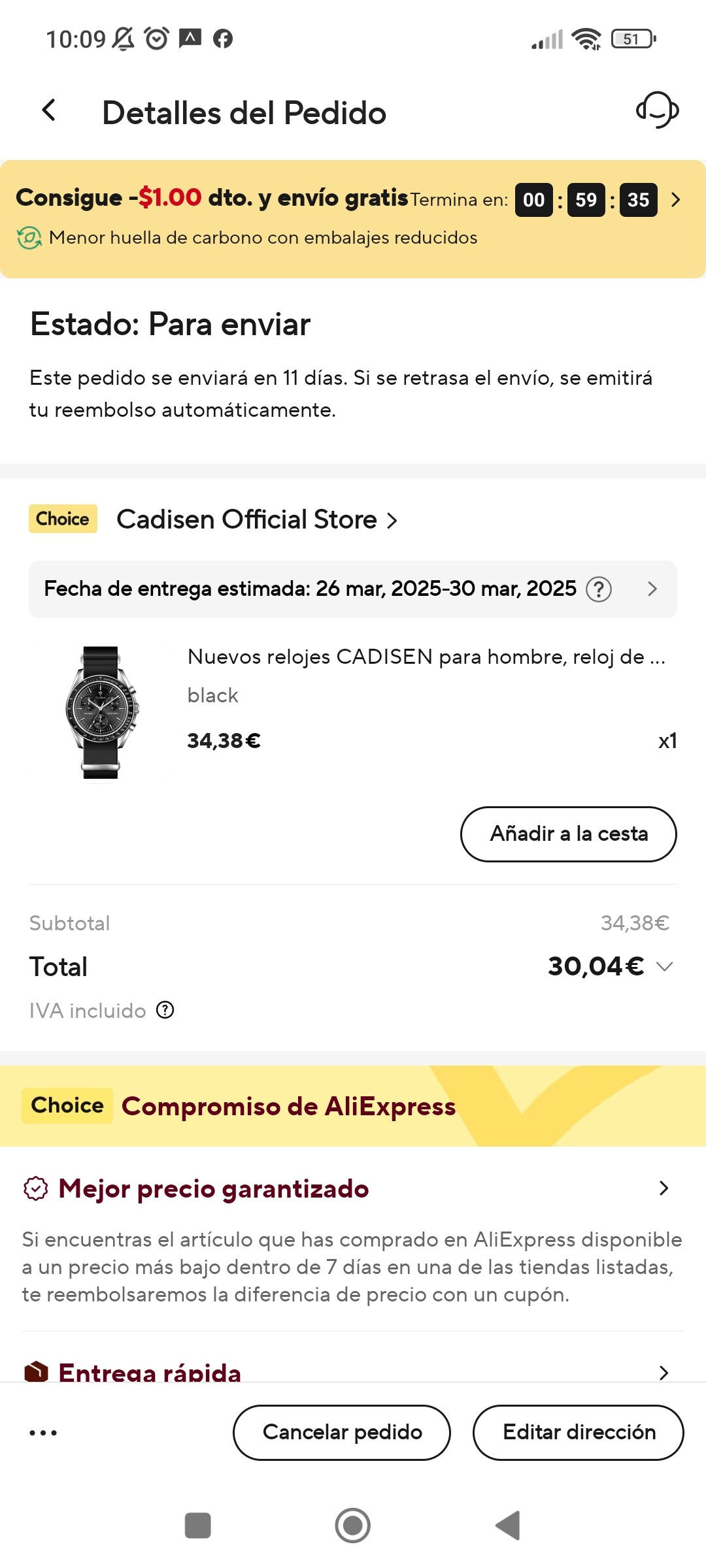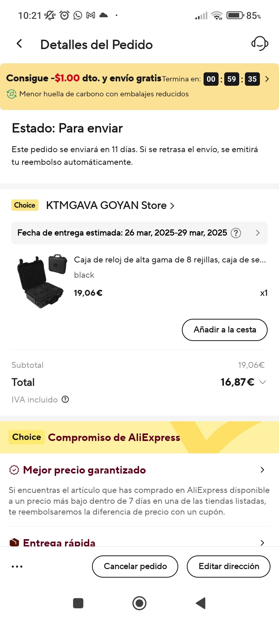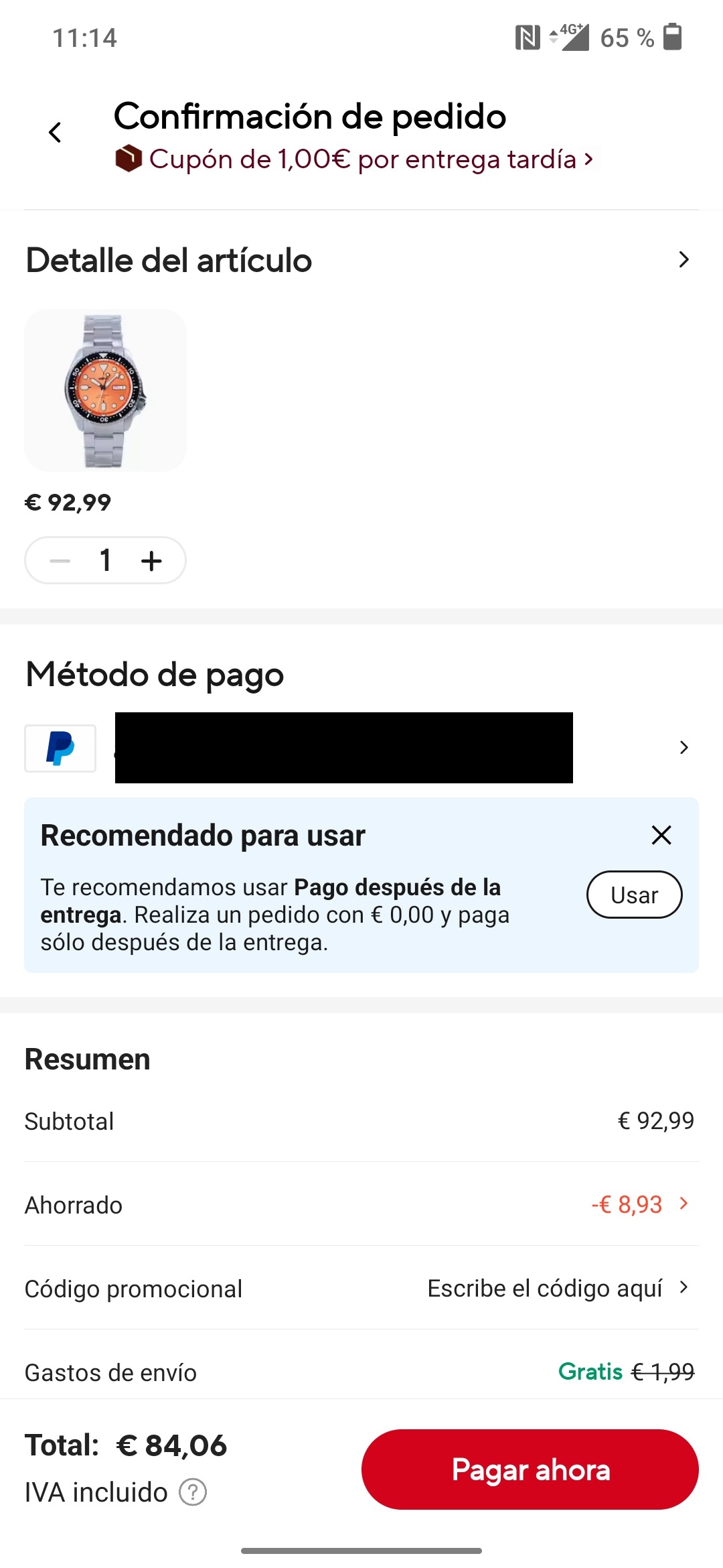 Si voy a la cesta e intento comprarlo el precio a pagar se queda en los 84,06