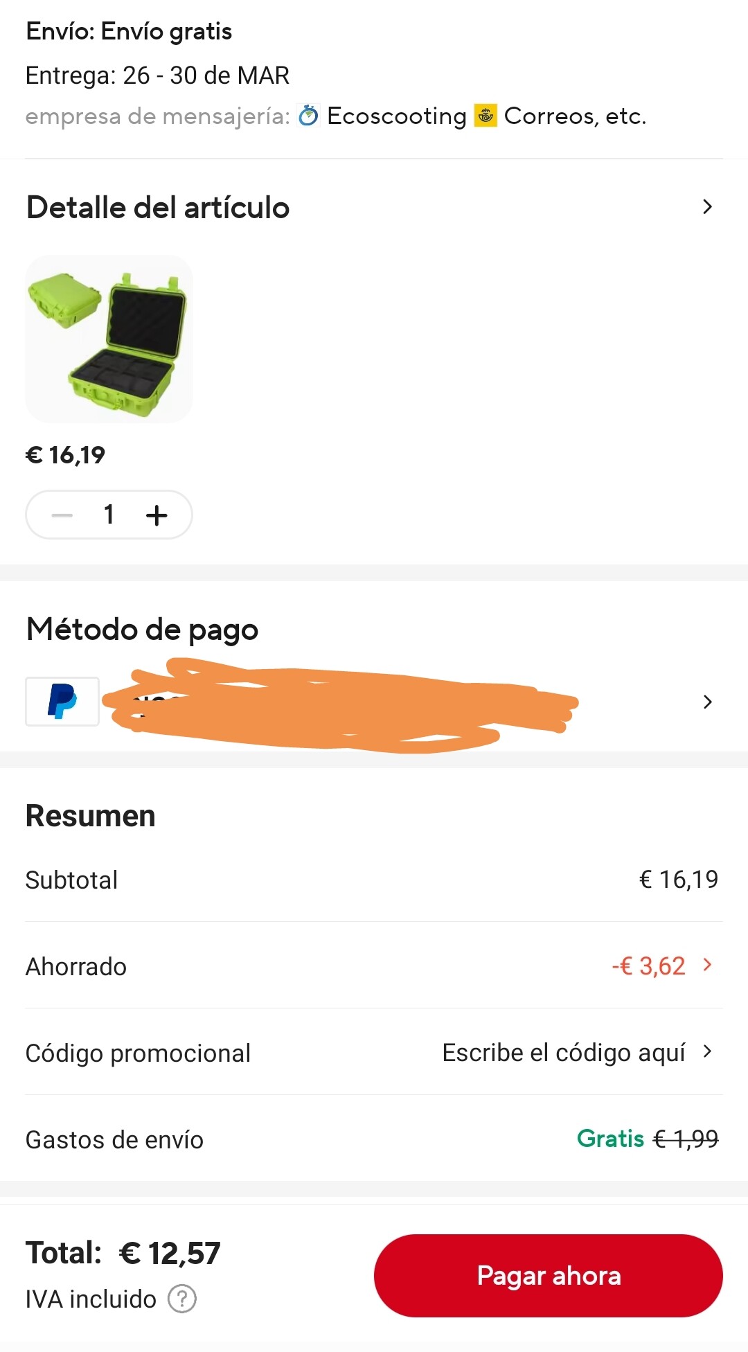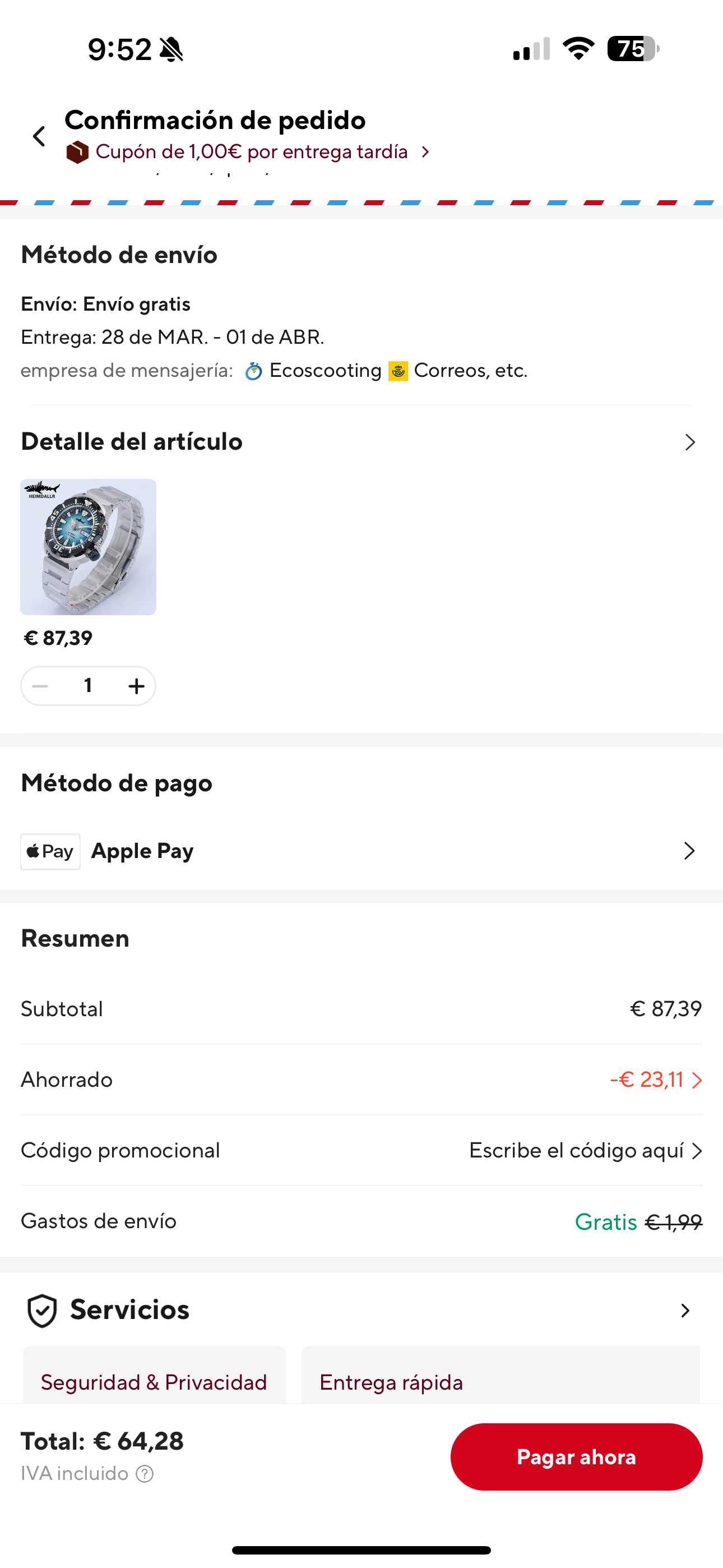 He vuelto a probar ahora lo que hice ayer para conseguir un buen descuento.
