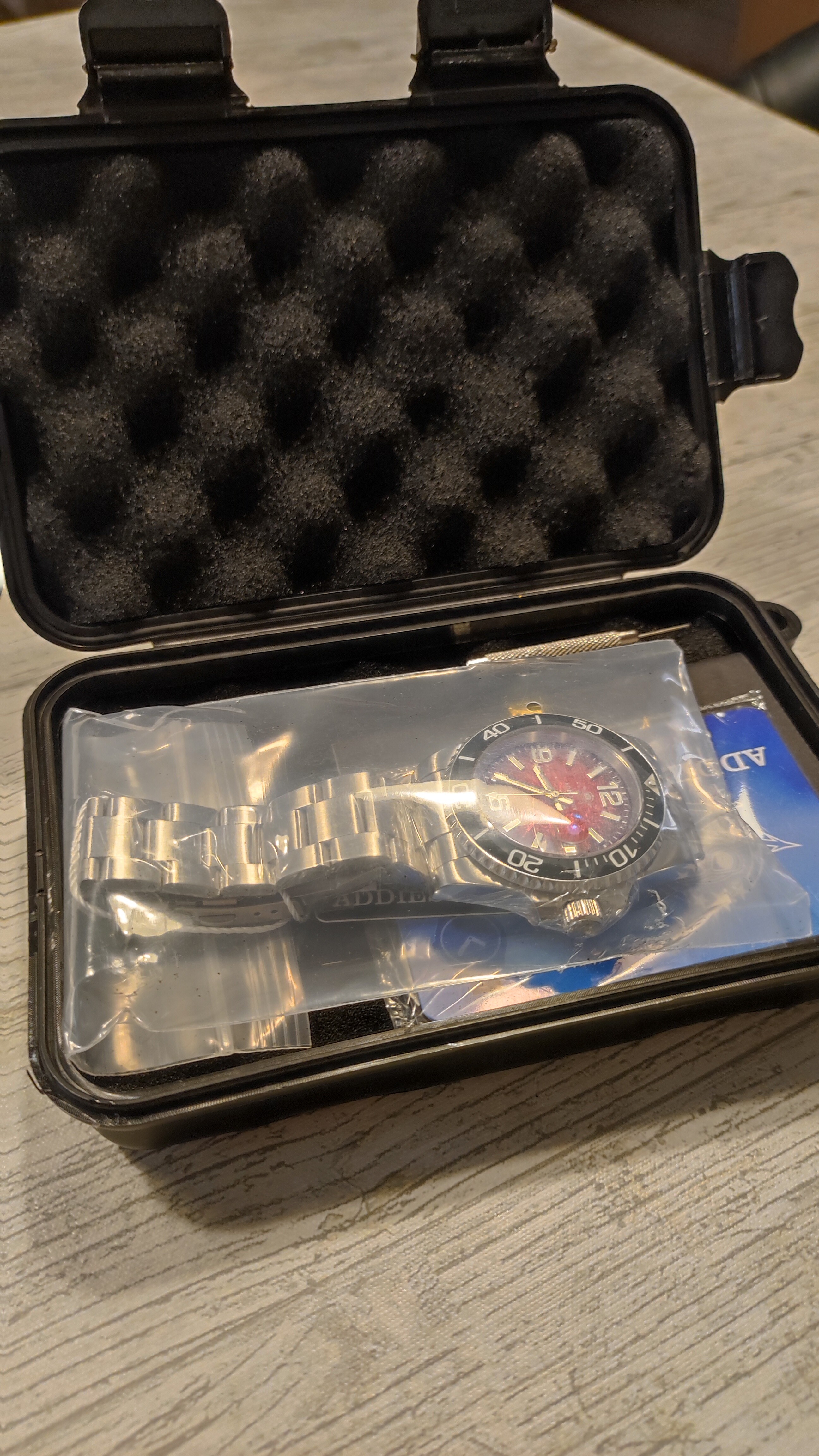 Primeras impresiones: por 29€ que me costó, no creo que haya algo mejor en relación calidad/precio. El dial es hipnótico, y con la luz del sol ya es increíble. Brazalete meh, el cíclope no sé si se lo quitaré o no, pero realmente muy recomendable. Quizás me lance a por el azulito también… Ahora sale en 31€ desde monedas:
