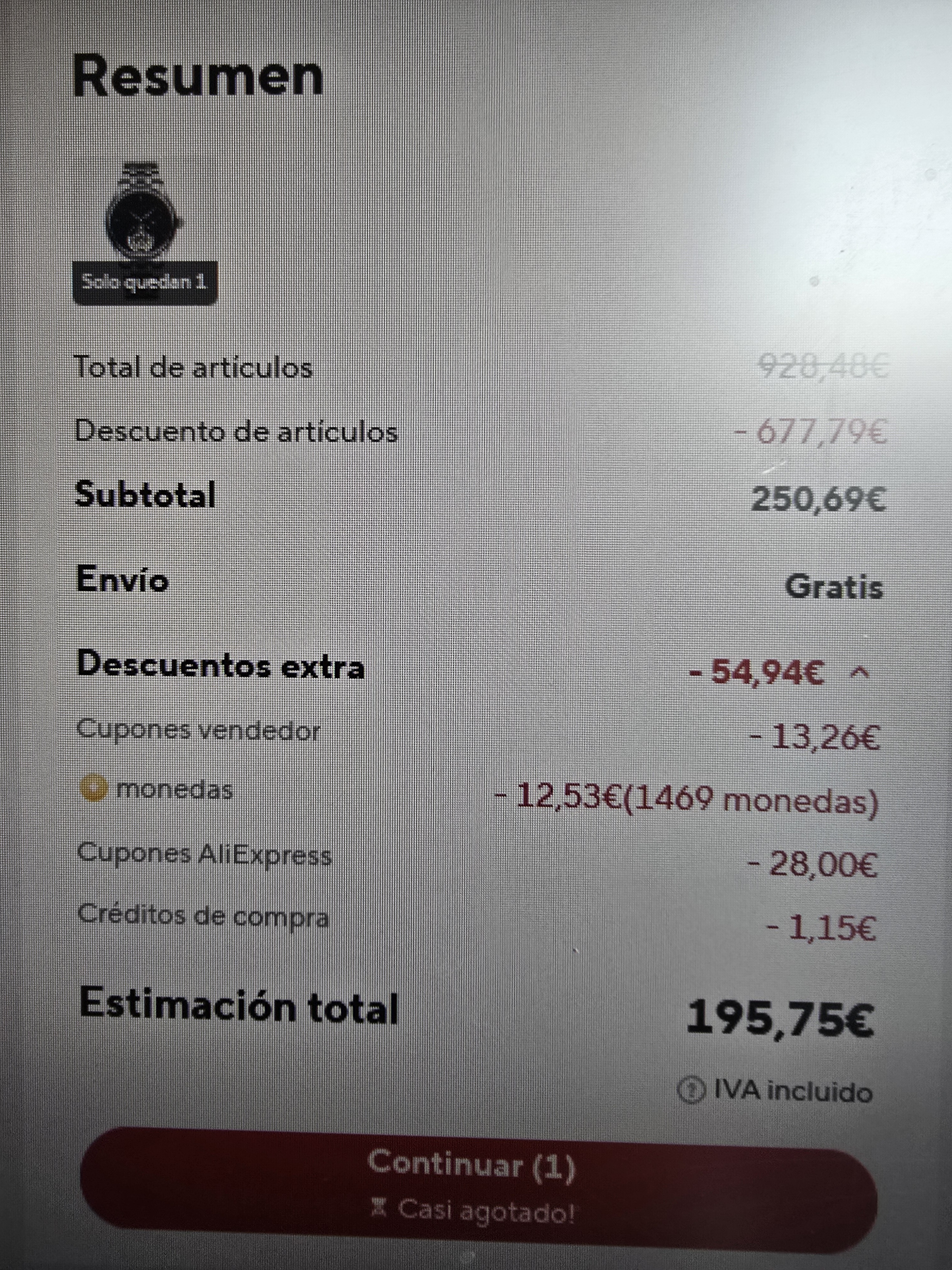 Esto es de locos, el mismo reloj, la misma tienda, hace cinco minutos. Diferencias en precio, descuentos… increible.