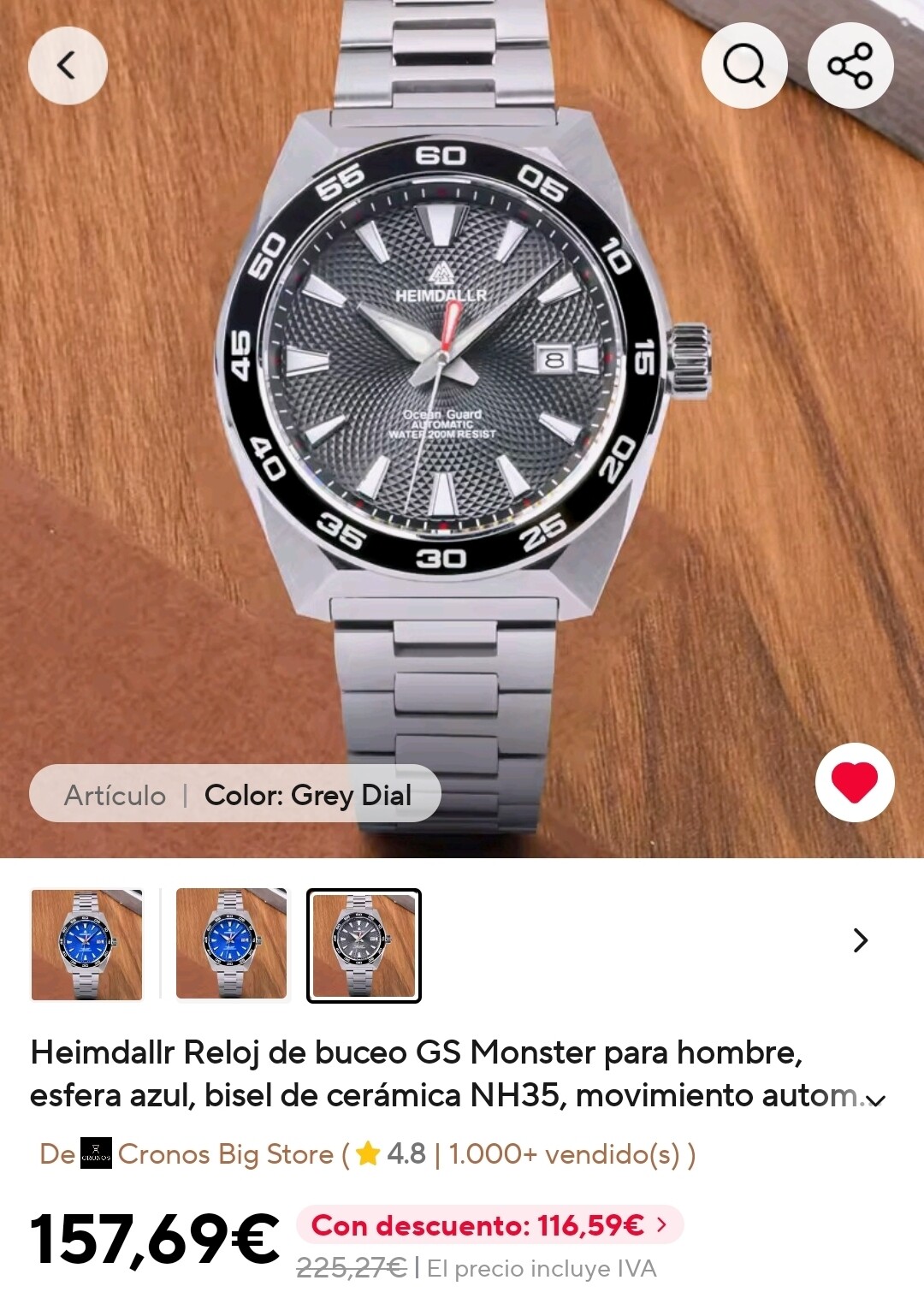 A veces en la misma tienda hay dos productos con el mismo precio. El Seestern por ejemplo. Pero hay otros con mas diferencia, como el sugess. En la misma tienda hay casi 30 de diferencia del mismo reloj. Son todo trucos de venta.