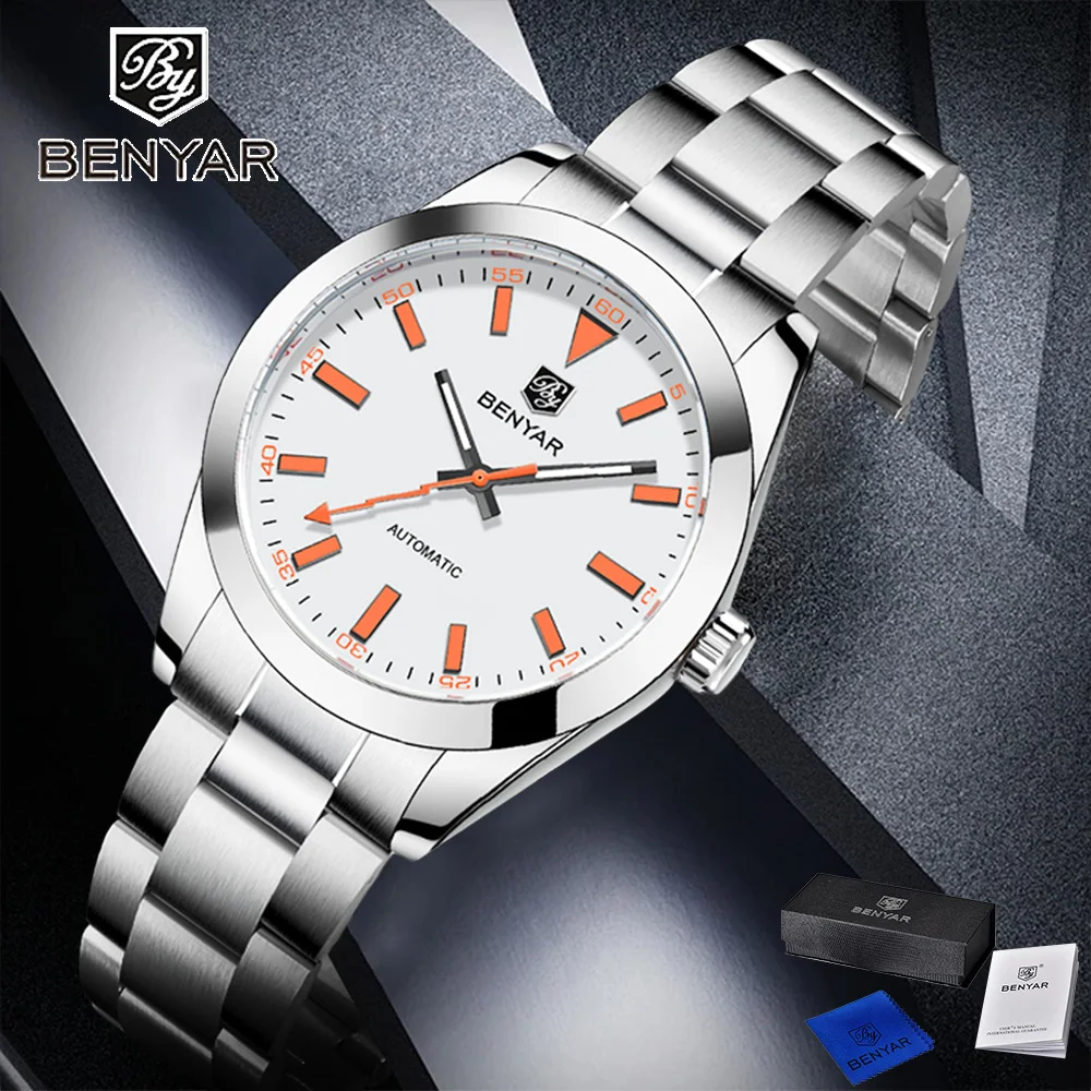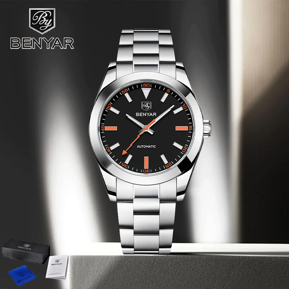88,17€ | 2025 diseño de moda 40mm reloj mecánico de negocios para hombres reloj automático de acero inoxidable impermeable reloj luminoso caja de regalo